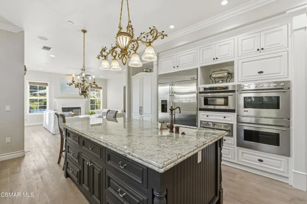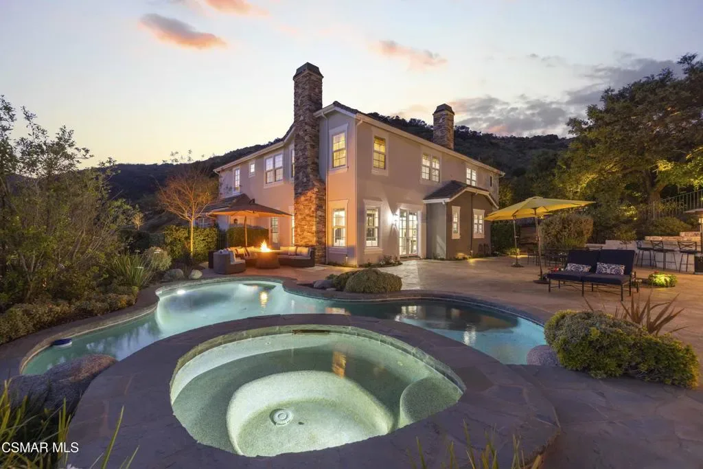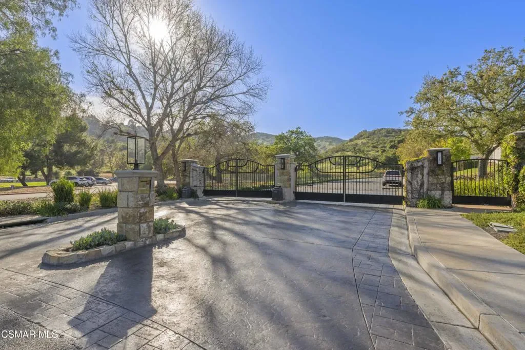 Set behind the gates in a prime Westlake Village location, this estate style home presents a rare opportunity to own a property that blends privacy, scale, and lifestyle. Ideally situated within a central pocket of Westlake, the home is just minutes from local shops, dining, and everyday conveniences, and within a 10 to 15 minute walk to the new Oaks Christian K-5 Elementary School opening August 2026.Designed for both everyday living and entertaining, the property features an expansive outdoor setting highlighted by approximately 3,000 square feet of dedicated entertaining space. The backyard is centered around a pool and spa, complemented by a covered barbecue area complete with a stove, double sink, and refrigerators, all set against views stretching toward the Malibu Mountains.The grounds offer a unique blend of functionality and character, including a gourmet fruit tree orchard and vineyard with table grapes that produced approximately 120 pounds of fruit in 2025. Additional flexibility is found with a detached approximately 700 square foot guest house and multiple areas that present ADU potential with the ability to accommodate additional units, creating a versatile environment suited for a variety of living arrangements.A rare offering that combines a gated Westlake location, expansive outdoor living, and long term potential in one of the area’s most desirable communities.