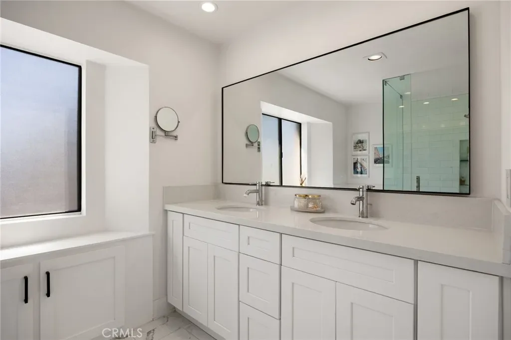 All bedrooms are generously sized, featuring a combination of built-in storage and his-and-hers walk-in complemented by fully updated bathrooms. The garage provides built-in shelving and a workbench for additional organization and storage.