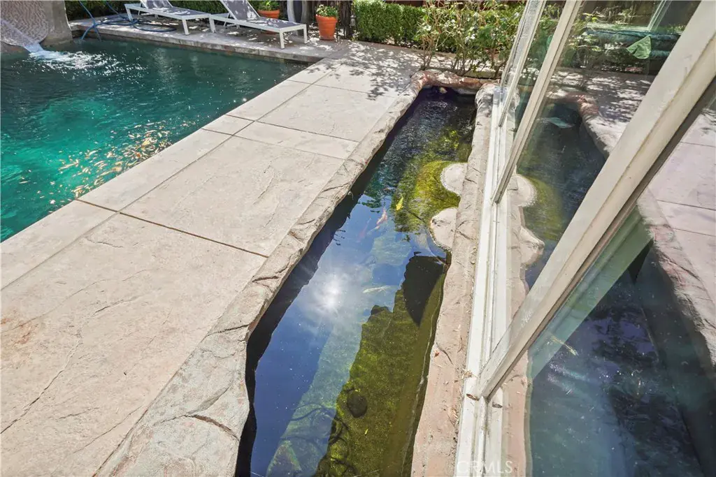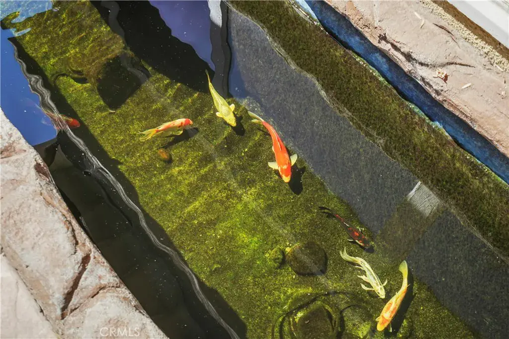 The kitchen features crisp white cabinetry, quartz countertops, stainless steel appliances. The spacious master suite is a retreat of its own, with custom walnut built-ins, a private balcony, and a spa-inspired bathroom boasting dual vanities, limestone tile, a separate water closet, and two shower heads plus rain shower. Downstairs, a remodeled powder room and a light-filled family room wrapped in windows invite relaxation and connection. Step outside to a backyard that rivals luxury resorts: a PebbleTec heated pool and 12-person spa with waterfalls and slide, a tranquil koi pond, a built-in fireplace, and a full outdoor kitchen for effortless entertaining. The extended side yard features a built-in basketball hoop and ample space to play, unwind, or host under the stars. This turnkey gem is offered at $7,999/month an exceptional value for those seeking privacy, sophistication, and the ultimate Southern California lifestyle. Experience the difference where luxury meets location.