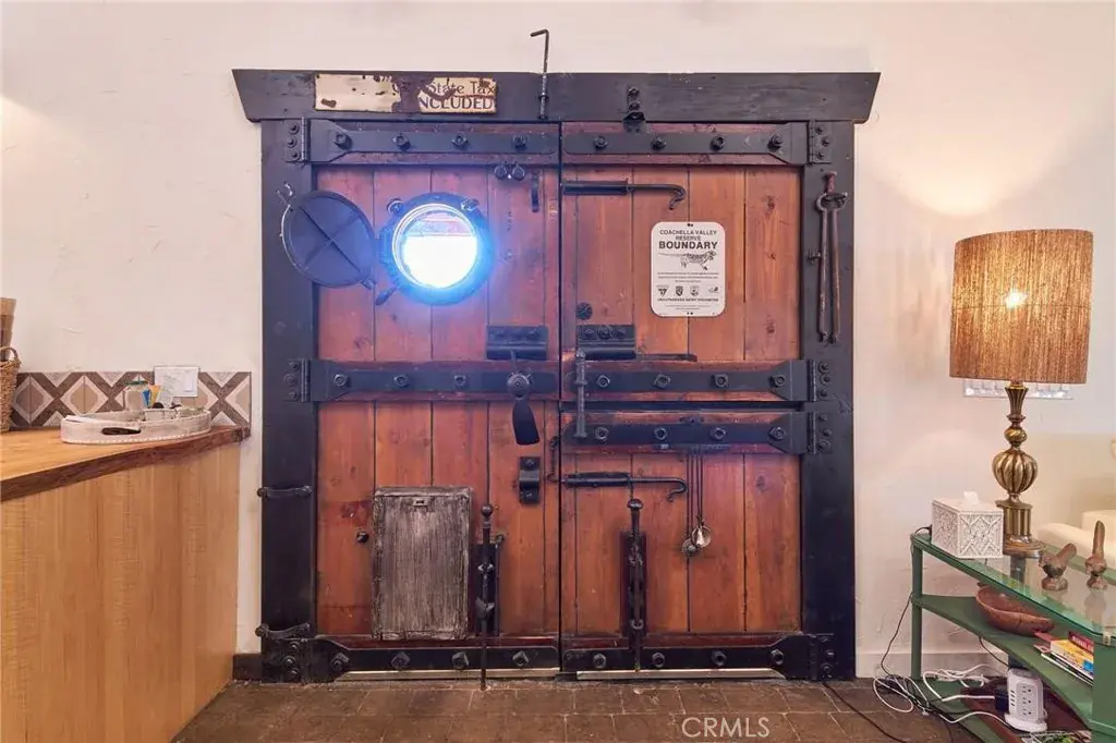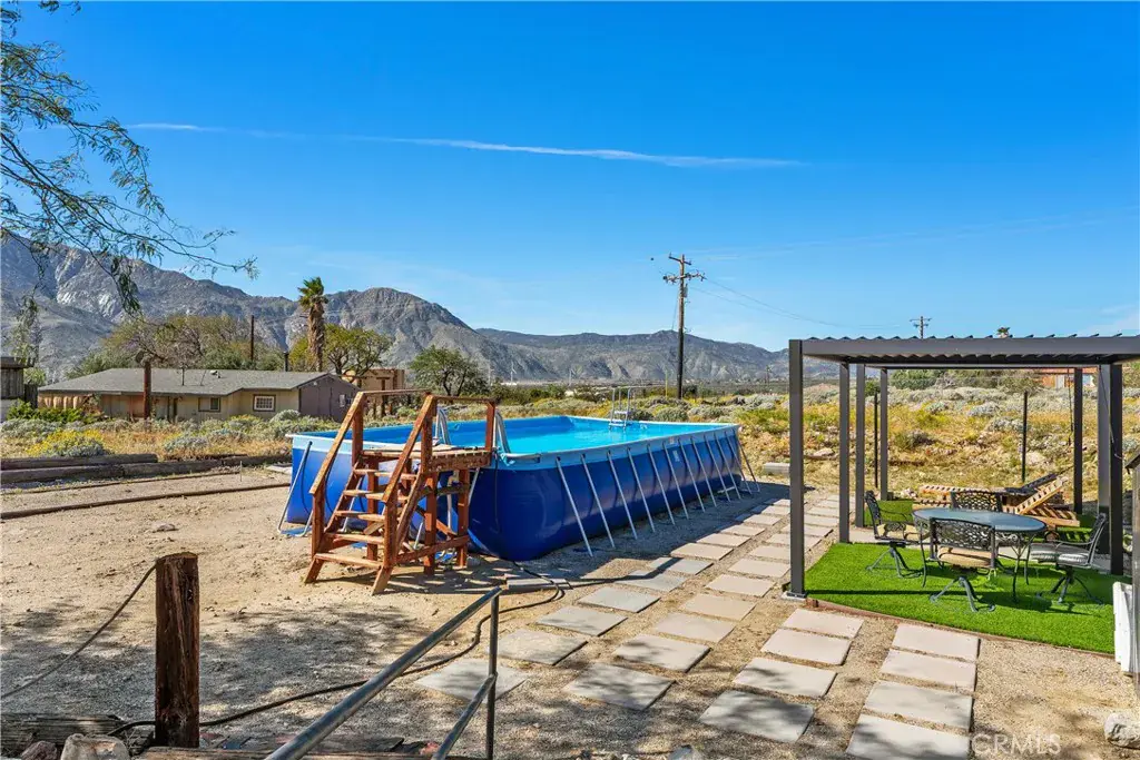 Discover a truly one-of-a-kind desert retreat! Set on a full acre with unforgettable 360° mountain and desert views, this remarkable property was crafted in 2001 by a desert-inspired artist and thoughtfully remodeled in 2023. The Desert Shack blends handcrafted charm with modern eco-friendly upgrades, showcasing features like custom doors, ironwork, stamped concrete floors, soaring ceilings, and preserved art installations that make this home unlike anything else on the market. This 2-bedroom, 2-bath residence offers a spacious, entertainer-friendly kitchen complete with custom cabinetry, custom live-edge wood counters, and new KitchenAid appliances. Step outside to your private oasis featuring a brand-new saltwater pool and spa and double convertible pergolas–perfect for soaking in the sunsets. An additional detached outdoor room provides flexible space for a guest suite, art studio, or pool house. All of this serenity is just a 20 minute drive from Palm Springs airport, casinos, shopping, and Joshua Tree National Park. Conveniently located off the I-10 and Highway 111. If you’re seeking a unique blend of artistry, comfort, and breathtaking natural beauty, this is the home you’ve been waiting for. This property also has a strong short-term rental history call for income history.