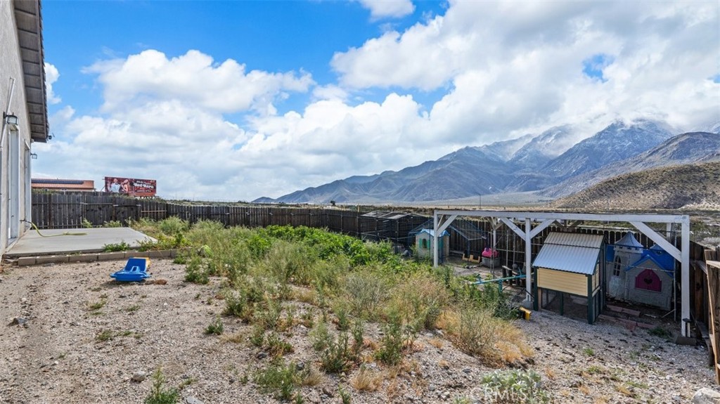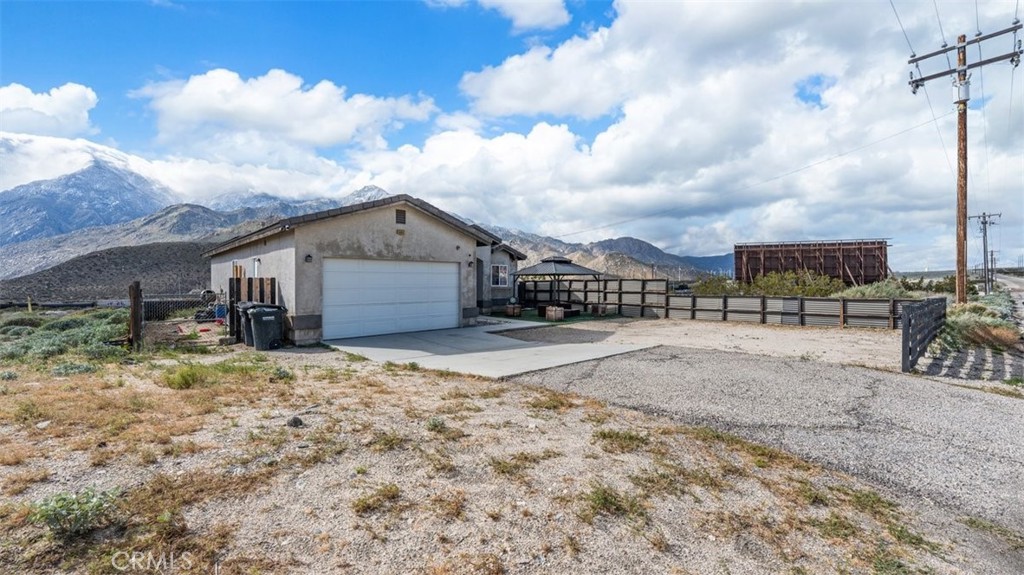 Breathtaking Mountain Views & Modern Elegance Await! Experience panoramic vistas of the San Bernardino and San Jacinto mountains from this stunning 3-bedroom, 2-bath single-story home. Situated minutes from Palm Springs, Morongo Casino, and Cabazon Outlets, this 2006 gem offers convenience and sophistication. Step through the 8-foot front door to discover soaring ceilings and a bright, open-concept living space with sleek tiled flooring and recessed lighting. The modern kitchen features stainless steel appliances, flowing seamlessly into a living area highlighted by huge French doors. The spacious primary suite is a true retreat, offering laminate flooring and private backyard access. Featuring upgraded 8-foot doors throughout, this home offers style and seamless indoor-outdoor living.