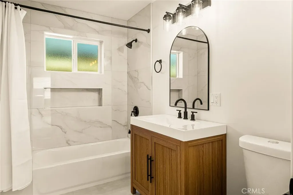 NEW CONSTRUCTION Contemporary 3Bedroom 1bath Home in the City of Whittier! This ALL-ELECTRIC New Build home comes with SOLAR and many highly desired features including a Spacious Open Floor Plan with New Kitchen, Fresh Paint, New Roof, New Hvac, New Vinyl Floors, New Bathroom, New Dual Pane Windows, New Appliances, Indoor laundry, Electrical car charger and much more. This home has a newly landscaped driveway for parking and storage shed for storage. Many schools, grocery stores, restaurants, shopping centers and parks in close Proximity! This home is the middle house on a lot with an existing duplex. Each of the homes on this lot has its own private yard and entrance. Tenants pay all Utilities. **Landlord Preferred Criteria includes all Adults 18+ age to have 640 FiCO scores and Combined Verifiable income 2X Rent amount**Small dog ok. Reach out for more information.