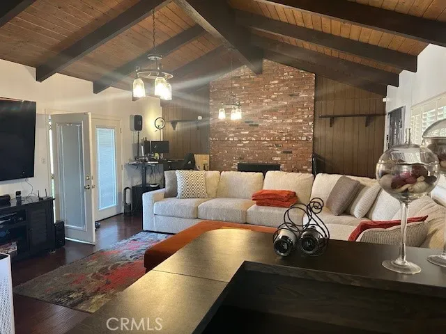 Charming single-story home located on a quiet cul-de-sac in a prime location near shopping, restaurants, and parks. Features an open floor plan with a spacious family room, open beam ceilings, and a brick fireplace with raised hearth. Updated kitchen with modern finishes. Plantation shutters and newer windows throughout provide great natural light. Laminate and tile flooring throughout—no carpet. Indoor laundry room for added convenience. Enjoy outdoor living with a covered patio. Detached two-car garage plus a long, gated driveway offering additional parking and privacy. Well-maintained home with great functional layout.