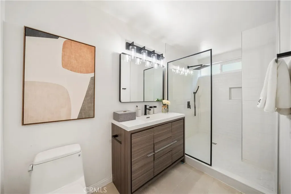 A Rare Offering with Truly Unparalleled Panoramic Views Across Los Angeles. This is one of the few homes in the community with sweeping, unobstructed views from Downtown Los Angeles to the Palos Verdes Peninsula. The scenery changes throughout the day, with especially beautiful sunsets. On the Fourth of July, you can even enjoy fireworks across the city right from home. Fully renovated in 2022, this move-in-ready home offers updated vinyl flooring and tile, a newer water heater, and a clean, contemporary aesthetic throughout. The main living area is bright and open, with high ceilings and plenty of natural light. The layout connects the living room, dining area, and kitchen, making it comfortable for both daily living and entertaining. A private balcony offers a great place to relax and enjoy the views. The primary bedroom is on the main level and includes its own quiet patio, perfect for relaxing or having a morning coffee. Upstairs, there are two additional bedrooms, a full bathroom, and extra storage space, offering flexibility for guests, family, or a home office. The community’s HOA amenities include a pool and spa. Located close to shopping, dining, and major commute routes (Highway 605 and 60), this home offers a great combination of views, comfort, and convenience. One of the best view homes in the community, a rare opportunity you don’t want to miss!