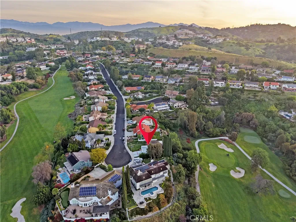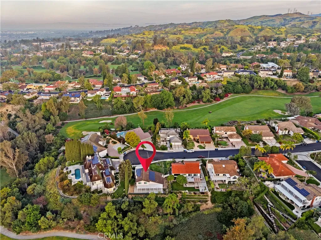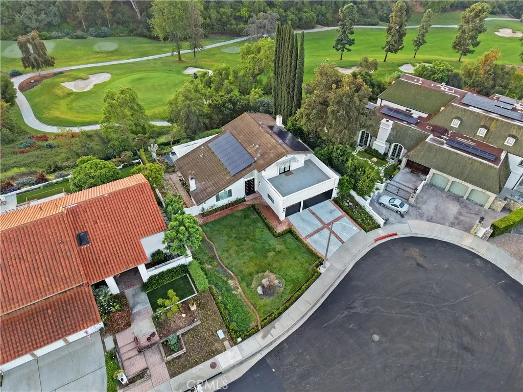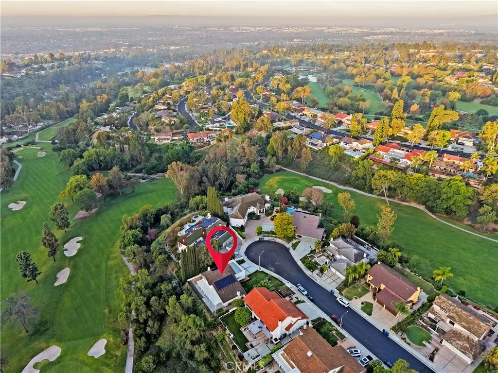 Beautiful 2-story home nestled at the end of a cul-de-sac overlooking the 5th and 6th holes of the Friendly Hills golf course. The home has an excellent floorplan with four bedrooms (1 downstairs and 3 upstairs), three updated bathrooms, 8 ft high entry doors, high ceilings in entry, living room and family room with fireplace, formal dining room, and recently remodeled kitchen with new custom cabinetry, built-in refrigerator, wide stainless steel range & oven, new dishwasher, and quartz countertops. The primary bedroom has dual closets and a large balcony overlooking the golf course. The primary bathroom includes new dual sinks and tile shower. Other amenities include paid off solar panels, new premium vinyl plank flooring throughout the majority of the home, central air and heat, and a 3 car attached garage.