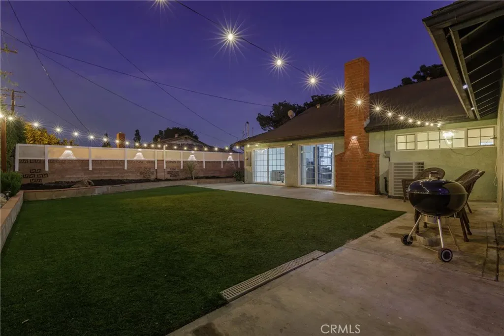 The backyard is designed for both relaxation and entertaining, featuring low-maintenance artificial turf, exterior lighting, and plenty of room to enjoy the oversized lot.
