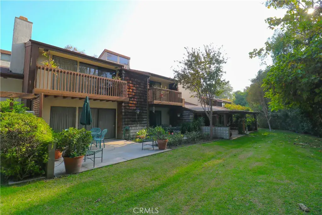 Welcome to the beautifully serene and parklike planned community of Friendly Woods! Trees and grass surround your home in this quiet and desirable gated neighborhood. A large and affordable home in the midst of Friendly Hills! Three Bedrooms, three baths, and 2098 square feet. Custom woodwork and built-ins abound. Balconies with patio covers are featured in all of the upstairs bedrooms facing lush backyards and greenery. The living and dining rooms open up to two private patio areas and open spaces. The main bedroom has a walk-in closet and an extended bathroom with dual sinks. The living room also has a fireplace with beautiful custom cabinetry. There is also an enclosed wet bar off the dining room. A breakfast dining area is part of the extended kitchen, which opens up to an exterior porch and a two-car garage with storage and a workbench. HOA amenities include a community area with a pool and spa, as well as a custom tennis court. Homes in this community rarely come up for sale. Check out this one!