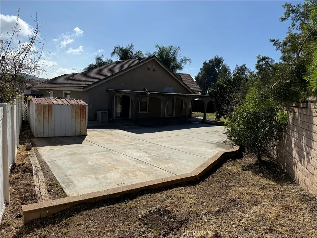 Cute, three bed two bath home on great size lot on a cul de sac. Concrete patio with large area to entertain. Planter box with orange trees, two large metal sheds plus a two car garage. Garage has a room addition for an office or another room.