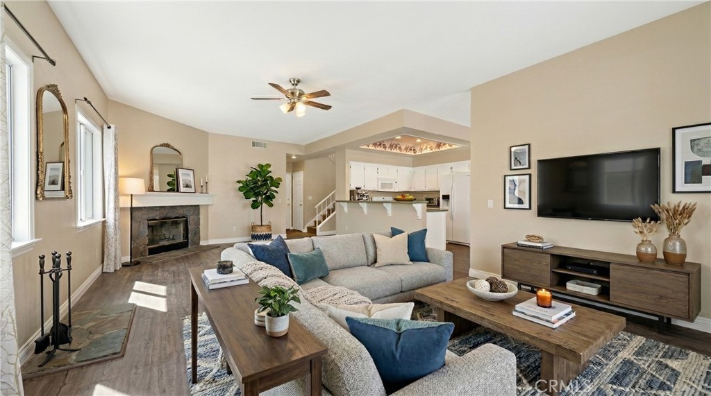 The MAIN LEVEL Features A PRIMARY BEDROOM With A Full Bathroom, Along With An Additional UPSTAIRS SECONDARY BEDROOM, Providing Ideal Flexibility For Guests, MULTI-GENERATIONAL LIVING, Or A Home Office Setup. The Interior Showcases Light And Bright Living Areas With Vaulted Ceilings, Large Windows, And Wood-Look Flooring Throughout The Main Living Spaces, Creating A Warm And Inviting Atmosphere. The Kitchen Offers Ample Cabinetry, Generous GRANITE Counter Space, And A Functional Layout That Opens To The Living Areas, Perfect For Everyday Living And Entertaining.