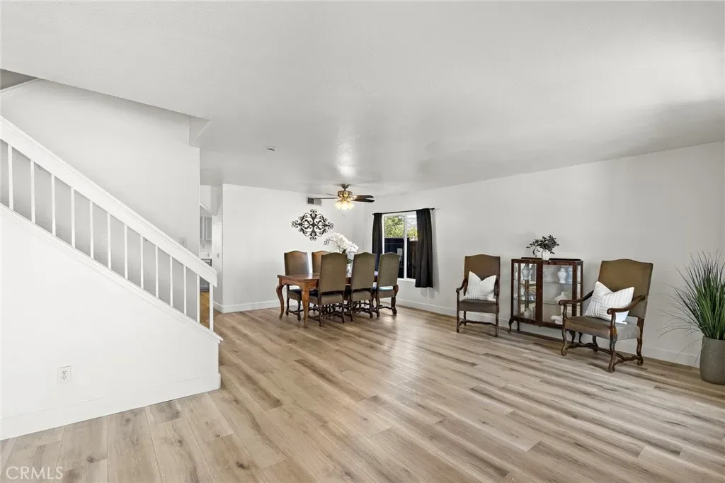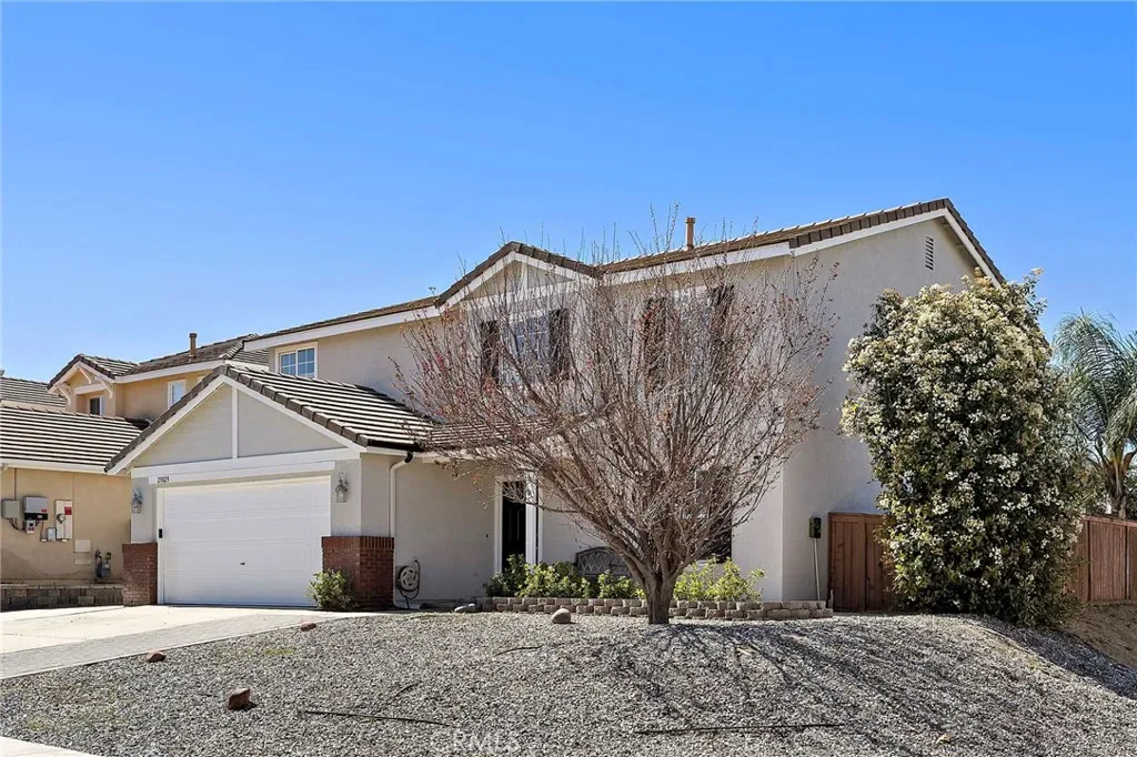 NO HOA, Lower taxes and Corner Lot! Location! Location! Location! Welcome to this stunning two-story corner lot home in the highly desirable and growing city of Wildomar! Boasting 4 bedrooms, 3 bathrooms, a loft, and 2,467 sq. ft. of living space, this home perfectly blends style, comfort, and convenience. Upon entering you will discover a large formal living room and adjacent dining room ideal for entertaining. The spacious kitchen features white tile countertops, stainless steel appliances, and a large bar for casual seating. A large family room with a charming fireplace provides a welcoming space for relaxation. Upstairs, the primary suite offers a generously sized bedroom and ensuite bathroom, separate tub and walk-in shower, and a huge walk-in closet. Three additional bedrooms and a versatile loft complete the upper level, providing flexible living space for your family. This home has been thoughtfully upgraded with new exterior paint, luxury vinyl plank flooring throughout and newer carpet, creating a bright, modern atmosphere. The laundry room offers plenty of storage, and the garage has direct access for convenience. Outside, enjoy drought-friendly landscaping and a backyard featuring a large concrete patio with an Alumna wood patio cover, perfect for outdoor gatherings or designing your dream backyard. Additional perks include no HOA and lower taxes. Conveniently located near shopping, dining, schools, and quick access to the 15 Freeway, this home truly has it all!