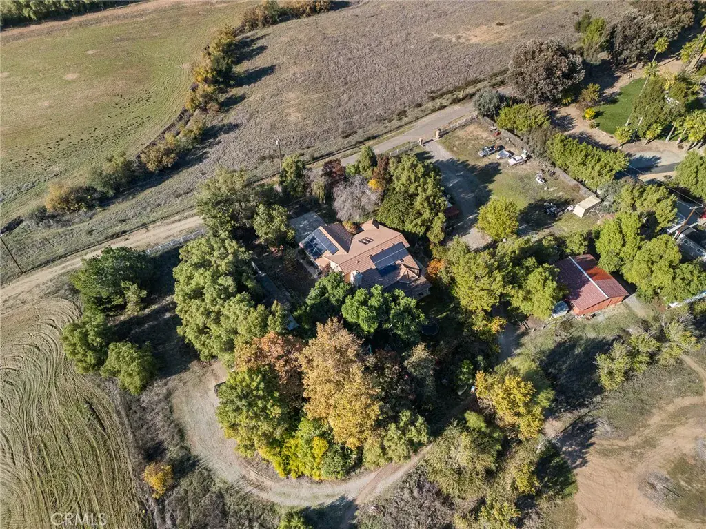 Magnificent 3 bedroom 2 bath house with its own long paved driveway hidden by mature landscape and its own private entrance that will welcome you as you come home. 2 casitas and a large wood barn to use to your hearts desire, not to mention its own built-in pond with a willow cascading above the water. This property is simply enchanting! with its mature landscape and willow trees. This is its own little private escape hidden in the middle of Wildomar. Grand open kitchen and living room with high ceilings, Large open primary bedroom and bathroom and a very complimenting floor plan that will accommodate almost anyones liking. 48 Solar panels owned!