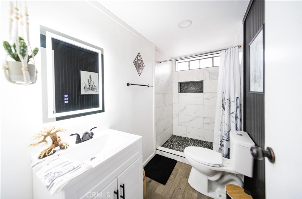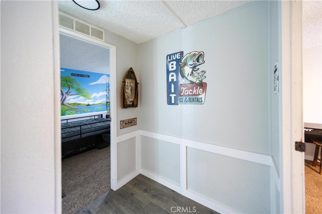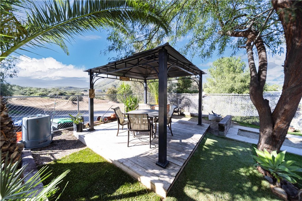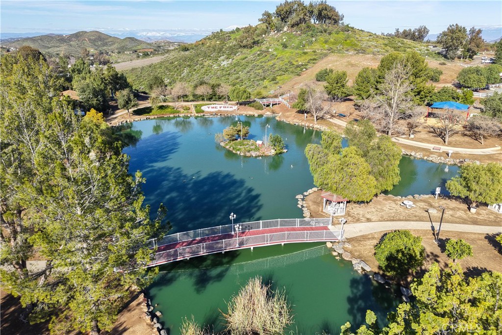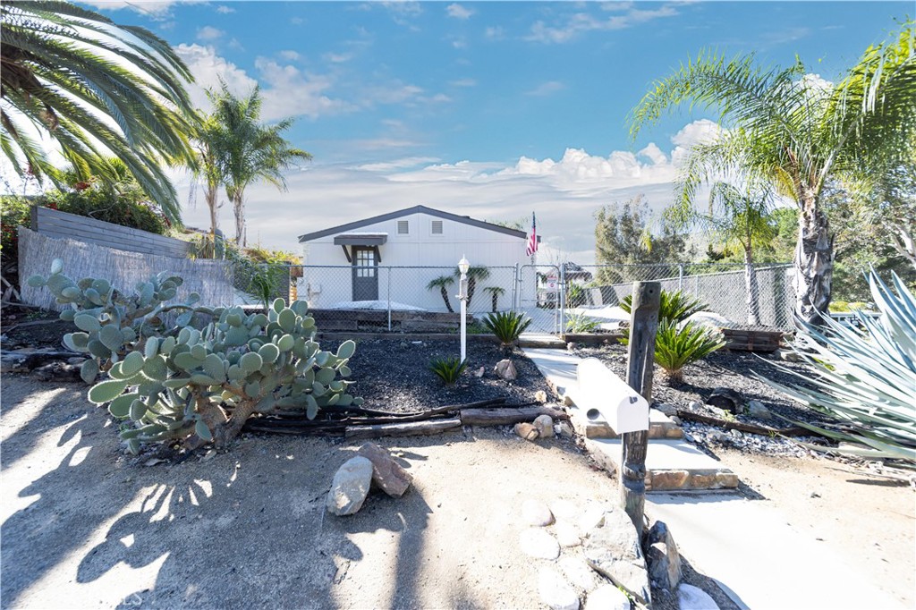 Welcome to life at The Farm, where mornings begin with fresh air, winding trails, and wide-open skies, and evenings end with quiet privacy and sunset views over the hills. Situated with no rear neighbors and backing directly to HOA-maintained land with hiking and mountain biking trails, this property offers a rare sense of space and connection to nature. Step out your front door to direct access to an additional community pathway, creating an effortless indoor-outdoor lifestyle. The low-maintenance yard allows you to spend more time enjoying your surroundings, while the covered outdoor seating area provides the perfect place to unwind and take in colorful sunsets behind the hills. A large gate offers convenient access to the side yard for added flexibility. The front yard is designed for recreation and relaxation, featuring a putting area, horseshoe pit, and a mini skateboard feature for added enjoyment. Inside, the home blends thoughtful updates with comfortable living. The modern kitchen showcases a deep contemporary sink and laminate wood flooring that extends through the kitchen and bathroom areas. Updated baseboards and molding add a clean, finished look throughout. Both bathrooms were remodeled approximately five years ago, offering refreshed style and functionality. A mudroom/laundry room provides practical access to the side yard, and the washer and dryer are included in the sale. Major system improvements provide peace of mind, including a new roof (2025), new exterior paint (2025), and a new water heater (2025). The home features 3 bedrooms plus an additional room currently set up as a storage area, offering flexible space for a home office, hobbies, or organization. A new metal carport was installed in 2024, providing covered parking. Please note, the property does not include a garage. The home sits on a permanent 433 foundation. Located within The Farm HOA in Wildomar, known for its relatively low HOA dues, residents enjoy an extensive list of amenities including three pools, three ponds, tennis courts, pickleball courts, basketball courts, playgrounds, a dog park, clubhouse, spa, walking trails throughout the community, and multiple fruit tree orchards for residents to enjoy. A unique opportunity to enjoy privacy, recreation, scenic views, and community living — all in one place.
