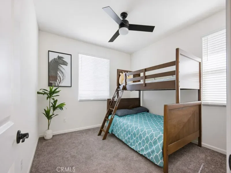 The home includes a convenient hall linen closet, ceiling fans in all bedrooms, and comfortable carpeting in each bedroom. The oversized primary suite boasts a generous walk-in closet and an en-suite bathroom with dual vanities for added comfort and functionality.