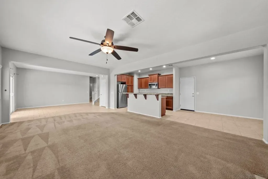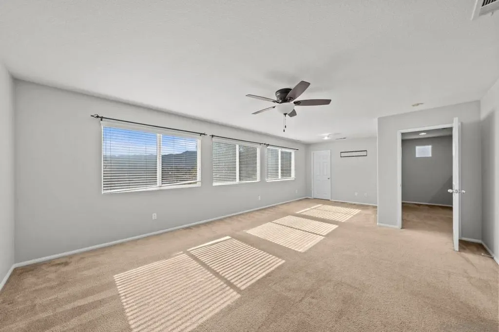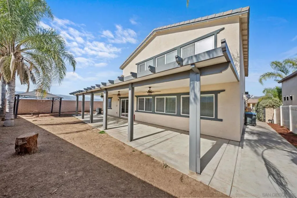 Beautiful 4-bedroom home tucked away on a private cul-de-sac with stunning mountain views—and neighbors on only one side for added privacy! Located in the desirable Canyon Village Estates community – Enjoy OWNED solar, a 3-car garage, low HOA dues—all in a prime location with easy freeway access and close to everything! The open-concept floor plan features high ceilings, abundant natural and recessed lighting, ceiling fans. The spacious dining room flows to kitchen, which is well-appointed with upgraded countertops, a large center island, built-in microwave, stainless steel sink, along with stainless steel appliances and breakfast bar seating. Upstairs offers three additional bedrooms and a convenient laundry room. The primary suite showcases beautiful views, a private retreat area, and a bathroom with dual sinks, a soaking tub, separate shower, and walk-in closet. Step outside through the sliding glass doors off the dining room to a backyard designed for effortless indoor/outdoor entertaining. Enjoy your covered patio complete with outdoor fans and lighting, plus a large gazebo—ideal for BBQs, get togethers, and admiring those mountain views. This is truly a move-in ready home you don’t want to miss!