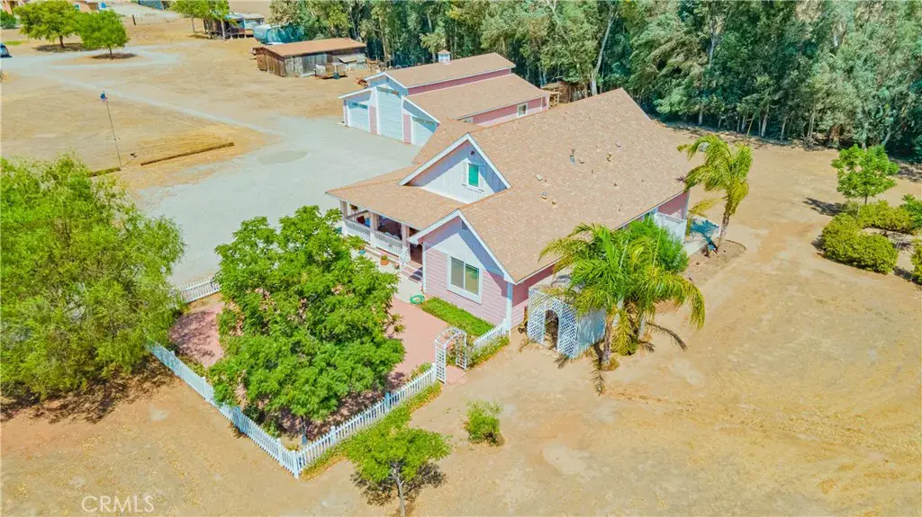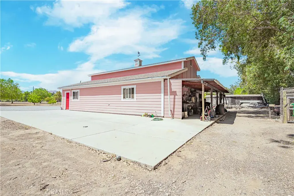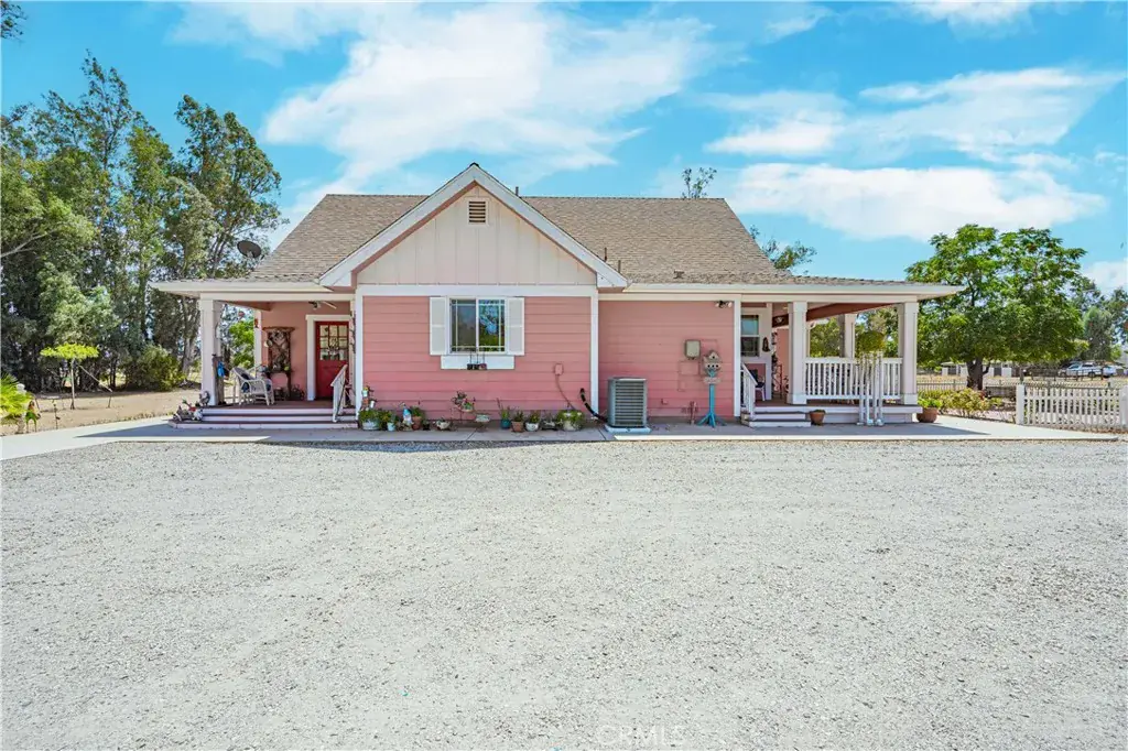 Your search is over! This property has a beautiful home, a tree lined drive and an amazing barn that is ready for your business, motorhome or all the toys you can bring. This acreage property is country living with several wonderful cities just around the corner. Temecula, Menifee, Hemet, Palm Springs. The home is 2,532 sq ft, three bedroom, two bath and was built with high quality in mind. This home has an idyllic setting with attention to the smallest of details. The home features, wraparound porches, beautiful wood floors, bathrooms are custom tile, gourmet kitchen features granite countertops and high end cabinetry, high ceilings, fantastic sunroom off the kitchen and dining area, wonderful inside laundry and pantry with granite countertop and sink, master bedroom on main floor with huge master bathroom with separate jetted tub and a walk-in custom tile shower so large that no door is needed, bathroom also features a nice sized walk-in closet with custom shelving, formal living room has a truly stunning cathedral ceiling with tongue and groove wood with a beautiful stairway leading up to a balcony and bonus/family room, home is equipped with dual air conditioners, Inside/outside speaker system, security system, under cabinet lighting, dual pane windows with custom window coverings, outside and inside motorhome storage with 30 amp service, the yard features the huge barn, gazebo, chicken coop, raised gardens and so much more!. This is truly a magnificent property. Everything is turnkey and ready for you to move in.