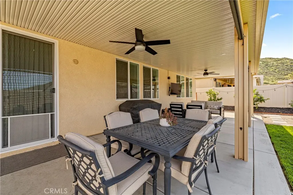 Welcome to 29567 Cherokee Trail a beautifully upgraded home that blends modern comfort, functionality, and outdoor living at its finest. From the moment you arrive, you’ll notice the enhanced curb appeal featuring professional landscaping, hardwired landscape lighting, an extended driveway and walkway, and upgraded Sherwin Williams paint throughout. Step inside to find a thoughtfully designed interior with upgraded modern door handles, a stylish barn door in the primary suite, and ceiling fans installed in both the living room and primary bedroom for added comfort. The kitchen has been tastefully improved with an upgraded sink and faucet, perfect for both everyday living and entertaining. Step outside into your private backyard retreat designed for both relaxation and entertaining. Enjoy a covered patio complete with two ceiling fans, lighting, privacy shades, and a dedicated outlet ready for your outdoor TV. The space is elevated with a concrete slab extension connecting the patio to the extended driveway, hardwired string lights for warm ambiance, additional electrical outlets, and a fully installed drip system for easy plant maintenance. The backyard also features sod, sprinklers, three citrus trees, and a dedicated dog run.