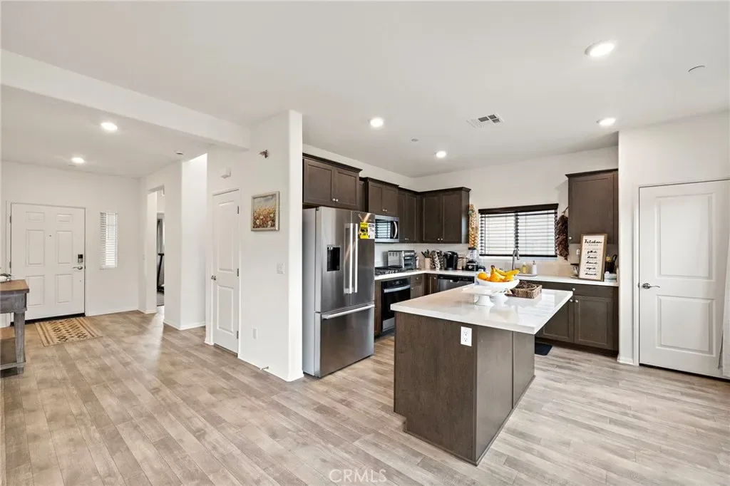 Welcome to this beautifully built 2024 home in the rapidly growing community of Winchester, where modern design meets everyday comfort. This Thoughtfully designed two-story home offers a bright open-concept floor plan, ideal for both entertaining and daily living. The spacious kitchen serves as the heart of the home, featuring a large island with seating, quartz countertops, stainless steel appliances, and upgraded stained maple cabinetry. High ceilings, recessed lighting, and luxury vinyl plank flooring. The main level includes a convenient bedroom, perfect for guests. Upstairs, you’ll find generously sized bedrooms, a versatile loft space ideal for a home office or additional living area, and a spacious primary suite complete with a walk-in closet and dual sink vanity. This home is energy-efficient, with a leased solar system (buyer to assume lease) and tankless water heater, 2 car garage is pre-plumbed for an electric car. Additional upgrades include an energy-efficient ERV (Energy Recovery Ventilation) system. The low-maintenance backyard is designed for ease and functionality. Located near parks, shopping, and easy freeway access, this home offers the perfect blend of convenience and modern living.