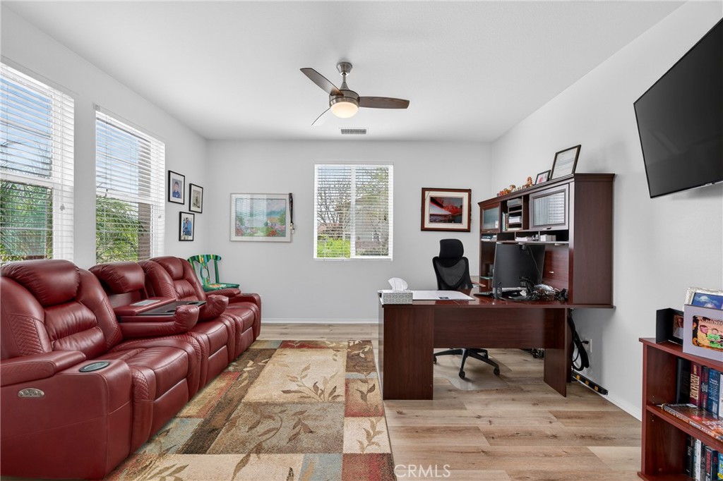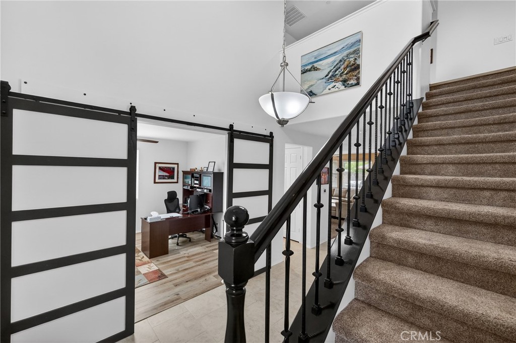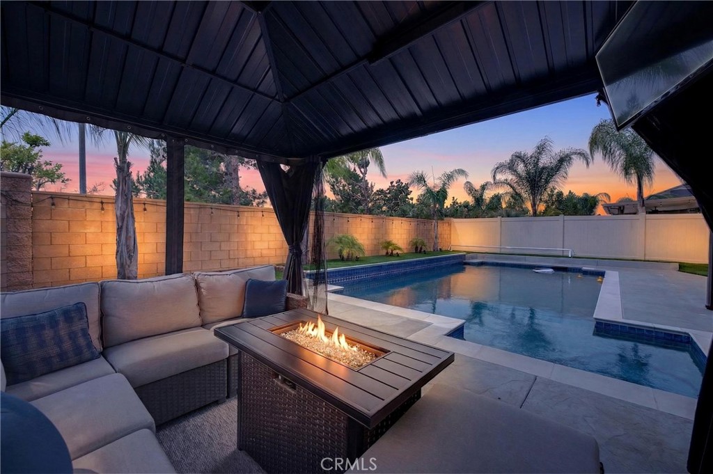 Location, Location Welcome Home to your Luxury Home, with your Dream Backyard. Your Own Oasis, an Entertainers Dream home is found in the highly sought after neighborhood of Winchester Ca, in the heart of French Valley, this is a K. Hovnanian Model Home, Stunning, two-story open floor plan, on a corner lot in Vineyard Heights. There are upgrades galore, pool solar comes with the home, custom barn doors for main floor office, whole house fan quiet cool system, two Aluma-wood patio covers, you must come see all the upgrades.. You drive up to the beautiful curb appeal, walk up to the very large porch, enter through the entry door, into the grand foyer, cathedral high ceilings, natural sunlight coming through the windows, and you see the custom-made barn doors, they go into the main floor office, there is a main floor bathroom, and storage closet, also a mudroom, before going out to the garage. Then you go up the staircase, that leads you to the upstairs, includes, four more bedrooms, and three walk-in closets, large loft, and large laundry room, with a three car tandem garage, renovated part of garage is another office now from 2020. Your own backyard Oasis is a Entertainers dream, with a sparkling blue pool, and lighting, built in BBQ, two Aluma wood patio covers, one with patio set, and fan ,standing gazebo with netting, also the lawn is low maintenance artificial grass. This spacious two-story home has living space of 3,549 square feet, with leased solar panels. This home highlights Chefs Kitchen with large granite Island, brown shaker cabinets, with lots of storage, stainless steel appliances, microwave oven, five burner stove, double ovens, range hood, a large butler’s pantry, and a large walk-in pantry, open floor plan into living room, dining room. Off the chef’s kitchen, main floor bedroom and bathroom, and media room. Upstairs is the Primary Bedroom Suite, with fan, and Primary Bathroom, double vanity, soaking tub, walk-in shower, and lighted walk-in closet. Prestigious Temecula Unified School District Elementary Susan La Vorgna, Rancho Bella Vista Middle, and Chaparral High School. Close to Parks, walking distance to Sheffield Park. Close to Shopping.