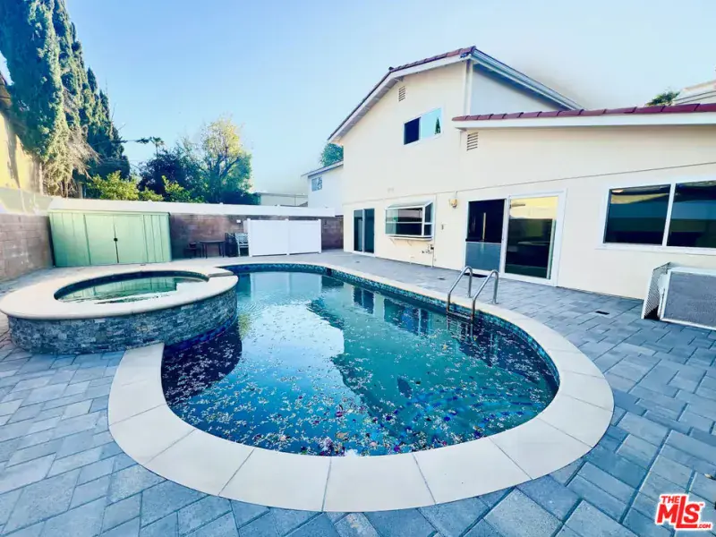 This must-see 3-bedroom, 2.5-bathroom home features numerous upgrades and is located near Desoto and Roscoe. The main level boasts a beautiful marble floor entrance leading into a living room with recessed lighting and a double-sided fireplace shared with the family room. The upgraded kitchen includes marble countertops, a matching breakfast bar, wooden laminate flooring, and custom pull-out drawers for easy access to the pantry and cookware. From the family room, sliding doors lead to a backyard featuring a salt-heated pool, a jacuzzi, and a convenient outdoor shower. Upstairs, the sunlit primary bedroom includes a walk-in closet and an ensuite bathroom. Two additional bedrooms, a full bathroom, and a large linen closet complete the second floor. Key features and upgrades include: -15 paid-off solar panels – EV charger – New plumbing and copper piping – Double-paned windows – Nest thermostat and home security system – Double front door entrance with an upgraded glass screen door – Low-maintenance yard with front turf and a concrete backyard. – Separate Formal dining room. Please call to schedule a showing.