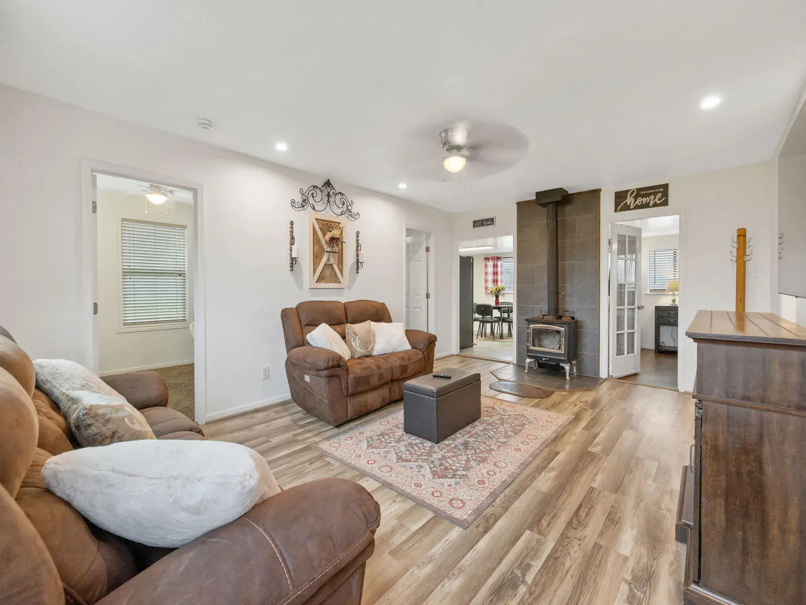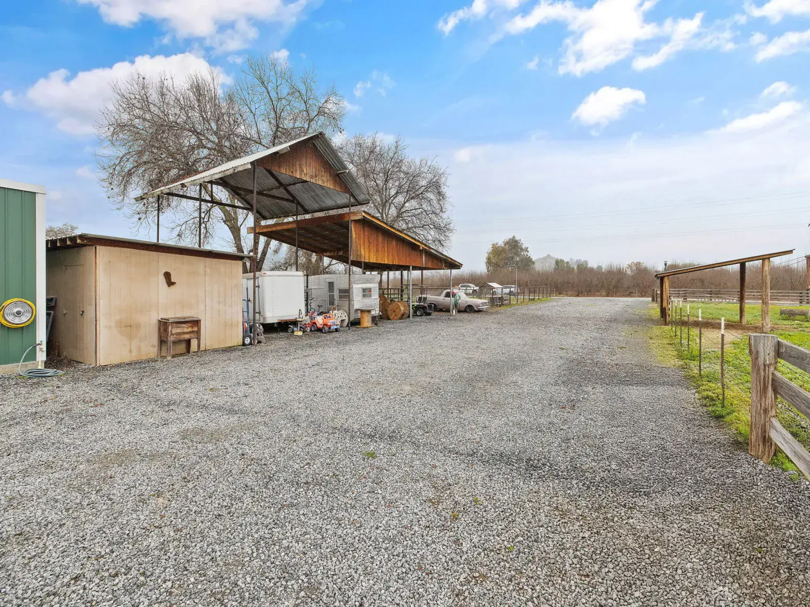 Welcome to your own slice of country living at 36871 Millwood Drive in Woodlake. Set on approximately 8 usable acres across two separate parcels, this unique property offers a rare combination of land, water, infrastructure, and future building potential. A true standout feature is over 700 feet of Cottonwood Creek meandering through the property, creating a peaceful, scenic backdrop and a setting that feels both private and timeless. The land is fully fenced and secured by an electric front gate, making it ideal for livestock, equipment, or recreational use. The property includes a 4-bedroom, 1-bath home offering approximately 1,100 sq ft of living space, featuring a new roof and fresh exterior and interior paint. While modest in size, the home is functional and provides a comfortable base while you plan future improvements or a new custom build. For those needing space to work, store, or create, the property is exceptionally well equipped. Improvements include a 20 x 45 ft shop with three bay doors and 220-volt power, a 10 x 20 ft shed, and a large covered carport suitable for vehicles, RVs, tractors, or hay storage. Multiple livestock pens, corrals, and pastures are already in place, making this an excellent setup for horses, cattle, or other animals. With two parcels totaling 8 acres, there is ample room for a future custom home, while maintaining the existing residence, shop, and agricultural infrastructure. Whether you’re looking for a working ranch property, a recreational retreat, or a long-term investment with development potential, this property delivers flexibility and opportunity. Peaceful, private, and rich with possibilities—this is country living at its best. Come walk the land, listen to the creek, and imagine the lifestyle waiting for you here.