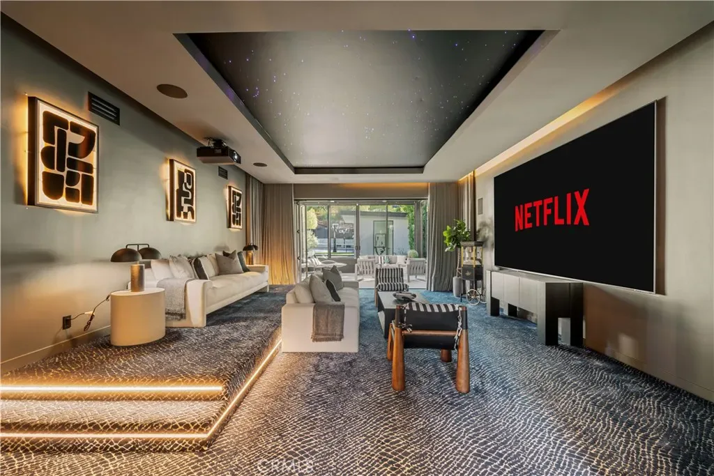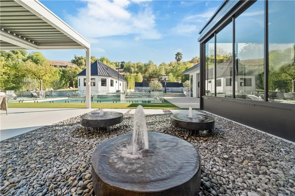 24 HOUR GUARD GATED COMMUNITY, HUGE LOT, LUXURY MANSION 7 BEDROOMS,10 BATHROOMS, DETACHED GUESTHOUSE, FULL SIZE NBA SIZE SPORT COURT. 2023 REBUILD, STUNNING LUXURY MANSION SOUTH OF VENTURA (24 HOUR ARMED GUARD GATED COMMUNITY), WESTCHESTER COUNTY home to just 160 residences, this showcase estate redefines modern luxury. Set on nearly one acre and completely reimagined down to the studs in 2023 with over $3 million in recent upgrades, this 10,000+ sq. ft. masterpiece offers an unmatched level of privacy, sophistication, and cutting-edge design.cathedral ceilings, Custom Designer Chandeliers, dramatic floor-to-ceiling marble fireplaces, and seamless indoor-outdoor living with automatic pocket doors and Lutron smart home automation controlling lights, shades, TV’s and premium sound (interior/Exterior) throughout. The residence boasts a state-of-the-art security system with interior/exterior cameras, a Control4 system, and a fully soundproof oversized home theater with, Premium Sound Package, massive Upgraded Projector Screen, and a walkout enclosed patio. The chef’s dream kitchen showcases Two 12-foot waterfall islands, a walk-in pantry, 2 Dishwashers, full-size refrigerator & freezer, high-end appliances, and a custom wine display. Upstairs, you’ll find 5 en-suite bedrooms, each with custom cabinetry and walk-in closets. The primary suite impresses with Custom Fireplace, Sitting Area, 2 oversize walk-in Closets 1 that has its own ELEVATOR an Oversize Spa like bathroom with Huge Rainfall Shower, Separate Tub, Vanity Area, and Walk-out balcony overlooking park like grounds. The amenities continue with two laundry rooms, a 3 car garage with metallic epoxy floors, and a massive loft space ideal for a gym, office, or playroom. Outdoor living rivals a resort with designer Lighting, landscaping, multiple entertaining patios, outdoor grill, cabana, custom glass pool fence, GLASS SPA, putting green, and full-size NCAA sport court. Outdoor Shower, A detached guest house,A Main Level En-Suite Bedroom perfect for guests. The Ideal Floorplan. This estate offers the perfect blend of modern technology, refined elegance, and resort-style luxury in one of the most coveted gated communities south of Ventura WESTCHESTER ESTATES, Patrolling armed Guard, Street Surveillance. dream home and one of the Safest Neighborhoods in LA for the most discerning buyer. Minutes to the 101, Target, Costco, Topanga Village, Fine Dining, Shops and Restaurants.