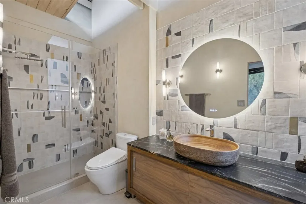 The landscaping is a masterclass in balance and simplicity, inspired by traditional Japanese garden design. Additionally, a newly remodeled bonus room below the main residence offers flexible use—currently serving as a home theatre and art studio.