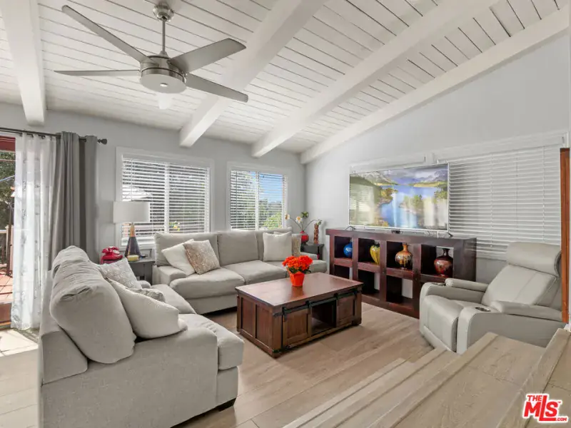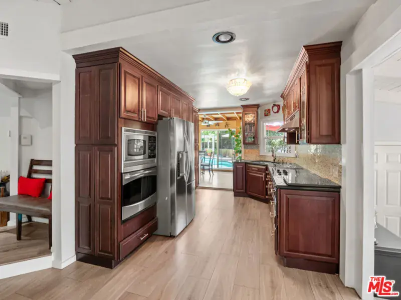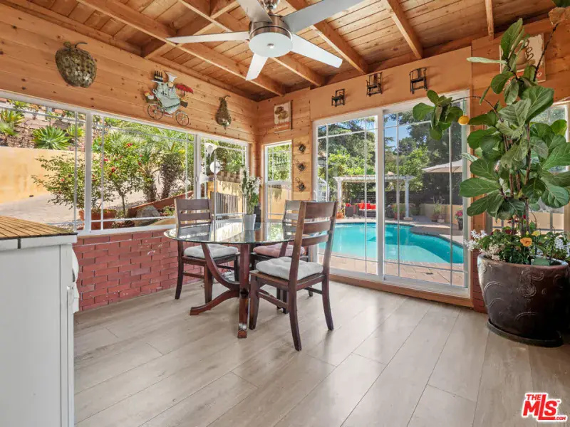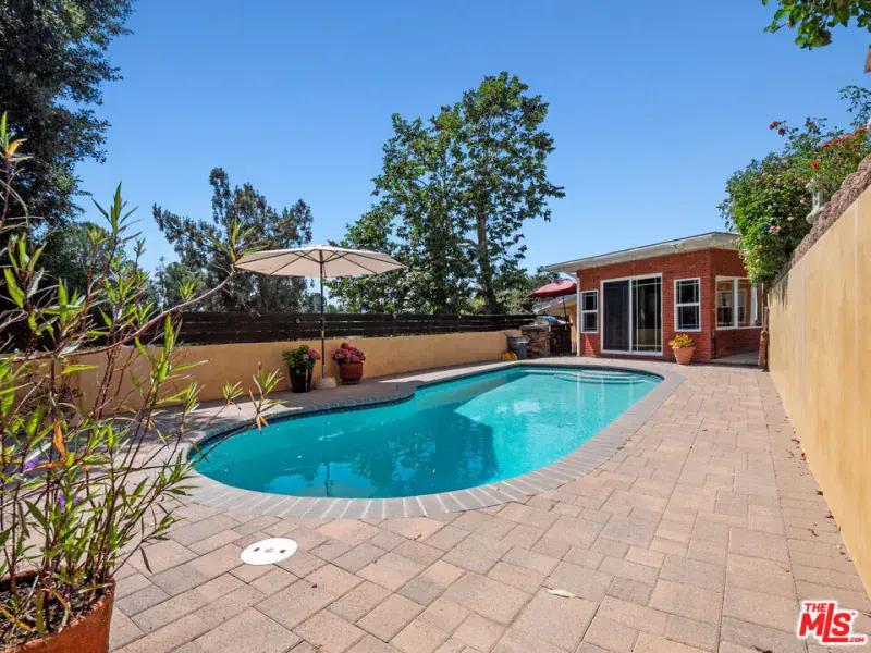 Welcome to this upgraded 4-bed, 2-bath entertainer’s pool home in Woodland Hills, featuring stunning views and an electric gated entry. Step into the inviting foyer that leads to the family room, boasting an upgraded fireplace with a wood mantel, wood vaulted ceilings, upgraded flooring and a slider opening to the side yard. The living room flows into the dining area, both filled with natural light from numerous windows showcasing beautiful views. The kitchen is equipped with stainless steel appliances and stunning cabinets with pull-outs, granite counters with custom backsplash and a breakfast nook offering picturesque yard views and lots of storage. The first level also includes two bedrooms, a bathroom, and a laundry area. Upstairs, you’ll find ample natural light, upgraded flooring, two additional bedrooms with walk-in closets, and a remodeled bathroom. The entertainer’s yard features a built-in BBQ, replastered sparkling pool with newer tiles and saltwater chlorine generators, newer HVAC, pergola patio cover, pool house, waterproof decking, recently stucco exterior and abundant storage throughout the property. Close proximity to Malibu Beach, Commons in Calabasas, The Village in Topanga, Topanga Social, Ventura Blvd, shopping, restaurants, and more! This home has it all and is ready for its new owner to make it their home!