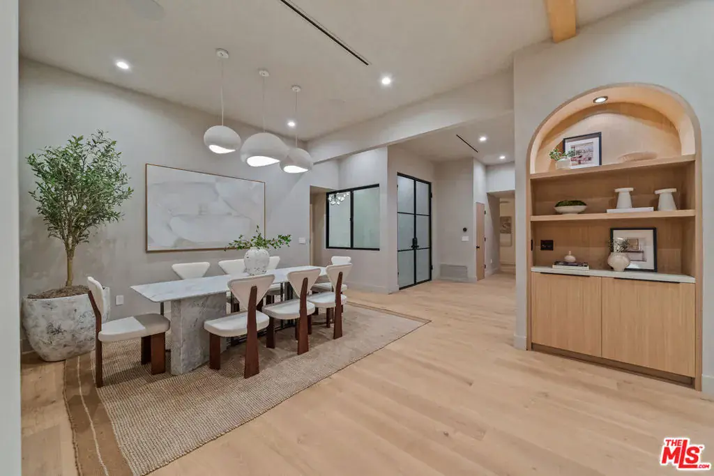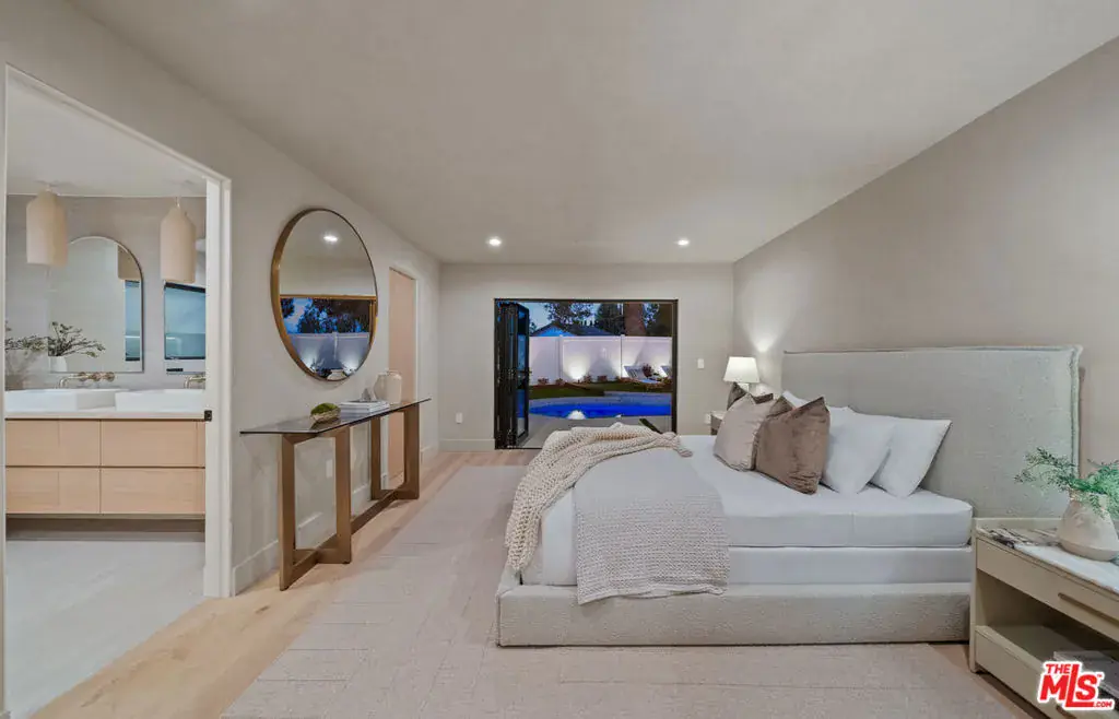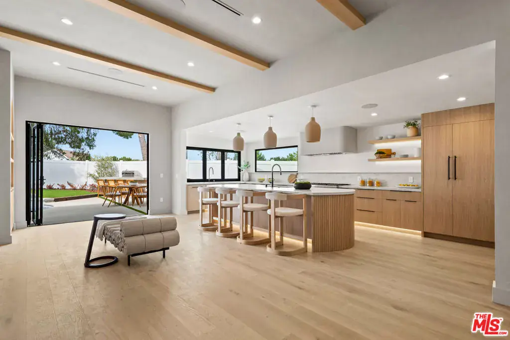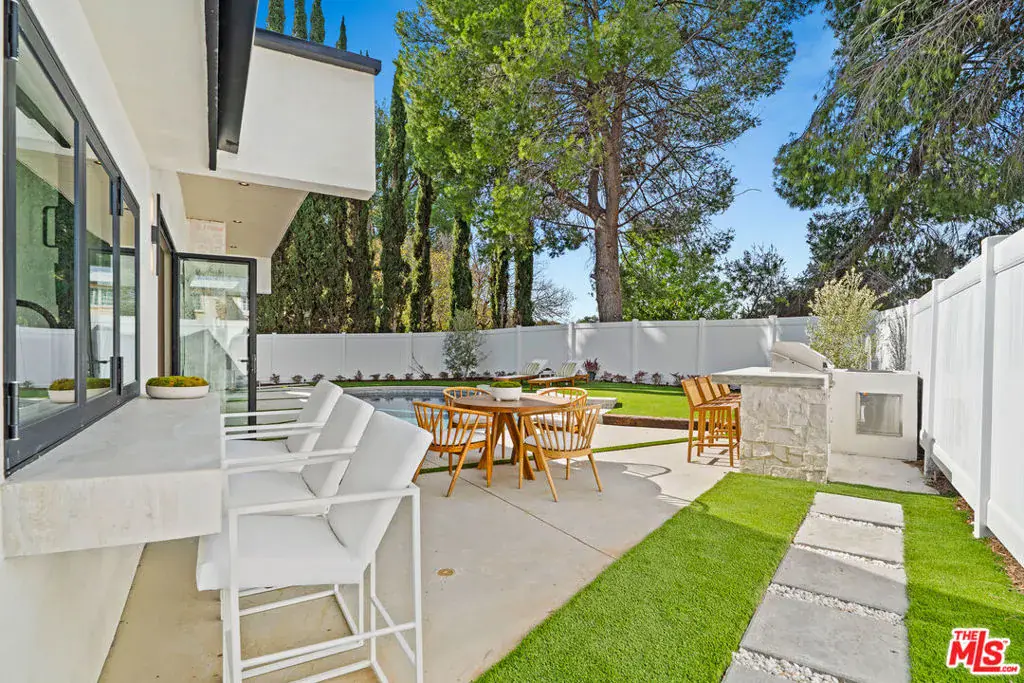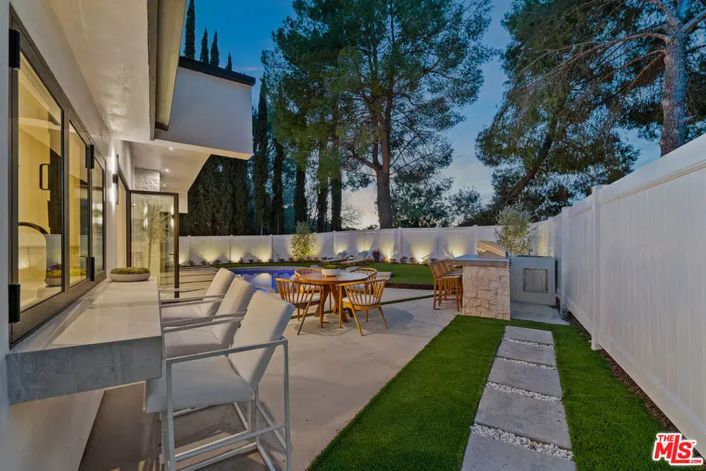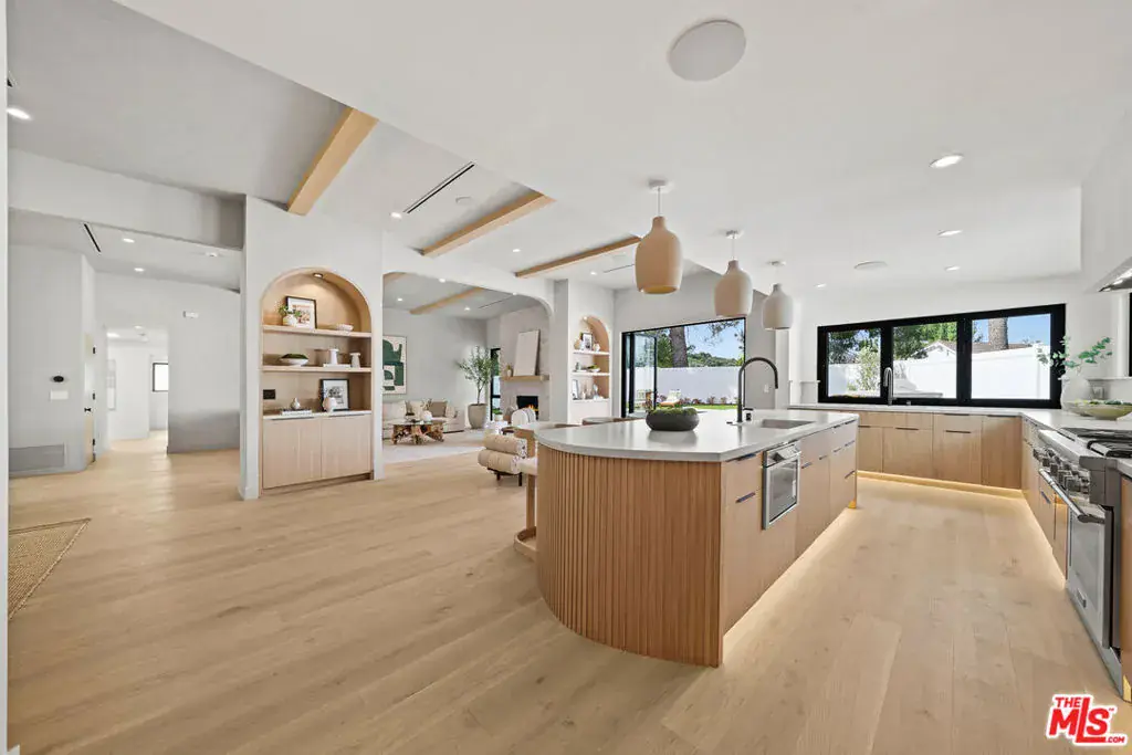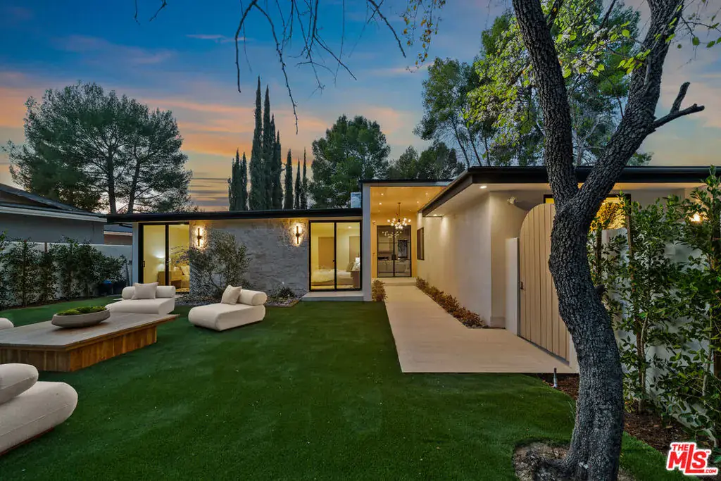 Tucked away on a quiet cul-de-sac south of the Boulevard, this modern organic single-story beauty offers the perfect blend of sophistication, comfort, and effortless California living. Soaring high ceilings, graceful arches, and an open floor plan create a light-filled, airy atmosphere designed for both everyday living and elevated entertaining. At the heart of the home, the chef’s kitchen is as stunning as it is functional space with refined finishes and seamless flow into expansive living and dining areas. Designed for entertaining yet undeniably cozy, the home exudes an indoor-outdoor lifestyle at every turn. Step outside to a private oasis featuring a resort-style pool and jacuzzi, built-in barbecue, and lush front and backyard spaces perfect for hosting gatherings or enjoying peaceful moments under the stars. Surround sound throughout enhances the experience, indoors and out. Located Calabasas-adjacent, this home offers privacy, style, and an unbeatable location in Woodland Hills. A rare opportunity to enjoy organic modern luxury with warmth, charm, and a truly inviting feel