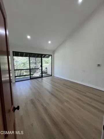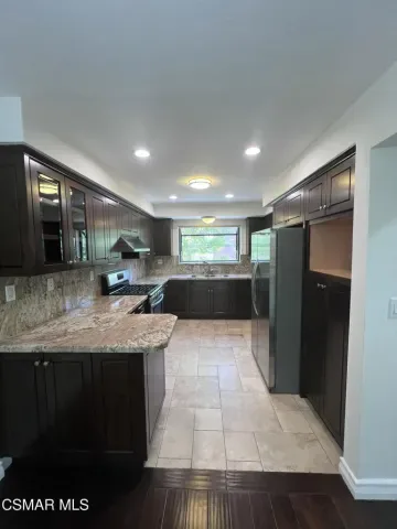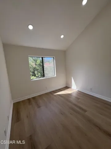 Nestled in the heart of desirable Woodland Hills, this pristinely maintained 2,200-square-foot townhome offers a refined living experience filled with natural light, thoughtful updates, and an enviable community setting. Boasting a coveted corner-unit position with only one shared wall, a desirable interior location, and the largest floor plan available in the community, this home stands out from the moment you arrive. Upon arrival, you will be greeted by the resort-like, meticulously manicured HOA grounds and a sense of tranquility that sets the tone for what awaits inside. Step through the door to discover rich engineered hardwood floors on the main level and quality vinyl plank flooring upstairs, complemented by large windows on every level that bathe the interiors in abundant natural sunlight and frame picturesque views of the lush community landscaping. The updated kitchen is a true highlight, showcasing elegant granite countertops and beautifully appointed dark cabinetry that create a warm and inviting space for preparing meals and gathering with loved ones. The primary suite serves as a serene retreat, complete with generous walk-in closets providing ample storage and captivating views overlooking a tranquil fountain-fed pond surrounded by ducks and verdant greenery — a peaceful scene to wake up to each morning. The living room shares this same enchanting outlook, allowing you to enjoy the scenery while cooking or sipping your morning coffee. A versatile bonus room on the lower level presents endless possibilities — ideal for a home office, private gym, entertainment space, or additional bedroom to suit your lifestyle. Recessed lighting with a convenient night mode is featured throughout the home, enhancing both ambiance and modern functionality. Practicalities are readily addressed with an attached two-car garage offering direct interior access and an included washer and dryer for everyday convenience. The resort-like community amenities elevate the lifestyle with three sparkling pools and spas, a tennis court, a recreation room available for private use, and the added peace of mind provided by security patrol. Exceptional added value includes complimentary premium cable TV and high-speed internet/wifi through Spectrum, along with water and sewer — all included in the HOA. Just minutes from premier shopping, dining, and business centers, this Woodland Hills townhome delivers a seamless blend of comfort, convenience, and community living. Truly a residence for the curated Southern California lifestyle!