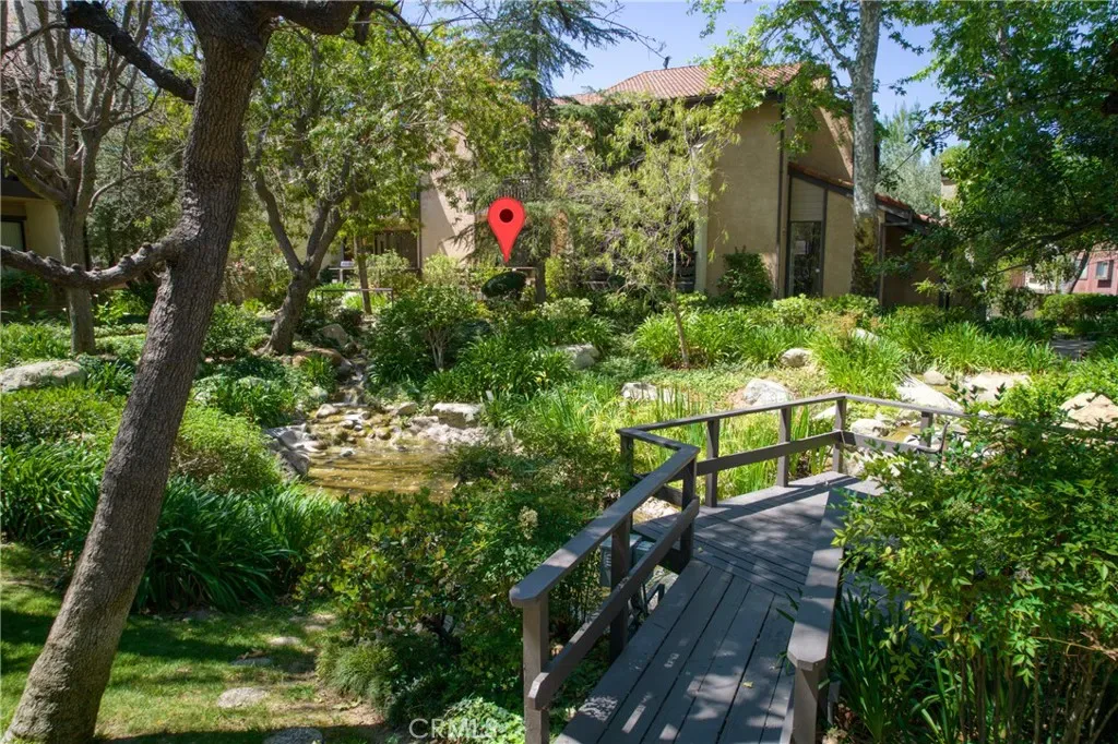 An exquisite sanctuary of tranquil water features and lush natural surroundings welcomes you to a private bridge gracefully spanning a babbling brook, creating a rare and picturesque entrance. This impeccably remodeled three-level townhome unfolds with sophisticated, high-end contemporary design and a seamless open-concept layout as it showcases a beautifully curated interior featuring new cabinetry throughout, brand-new kitchen appliances highlighted by new glass backsplash, elegant quartz countertops throughout, sleek designer tile in new shower and tub, new light fixtures and recessed lighting enhance the warmth of the flooring that creates an inviting yet refined ambiance throughout.