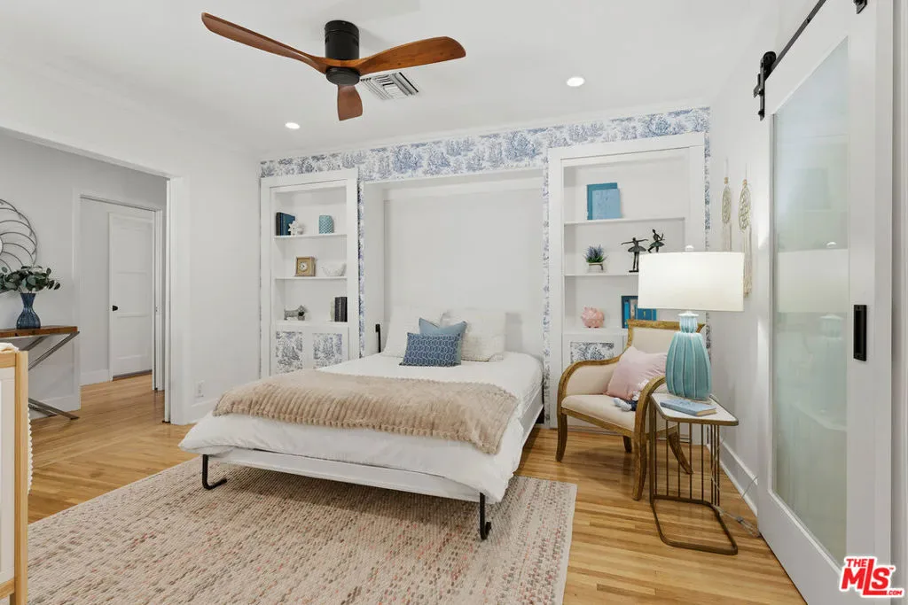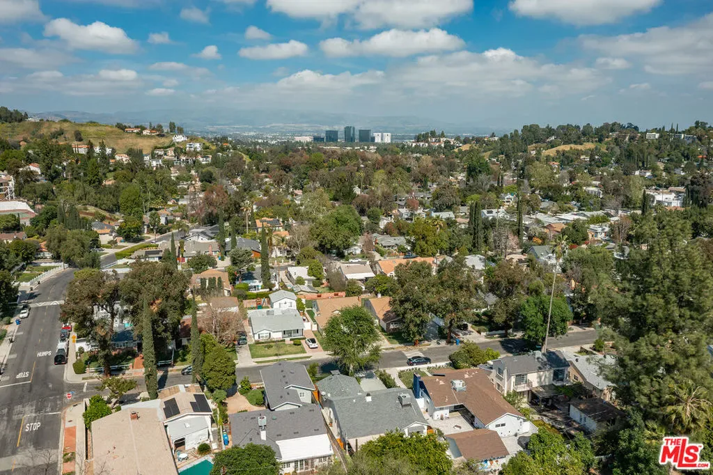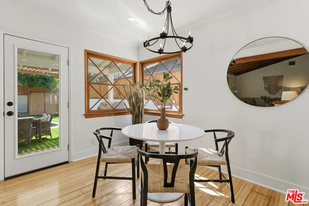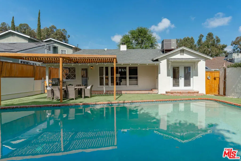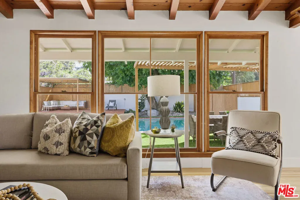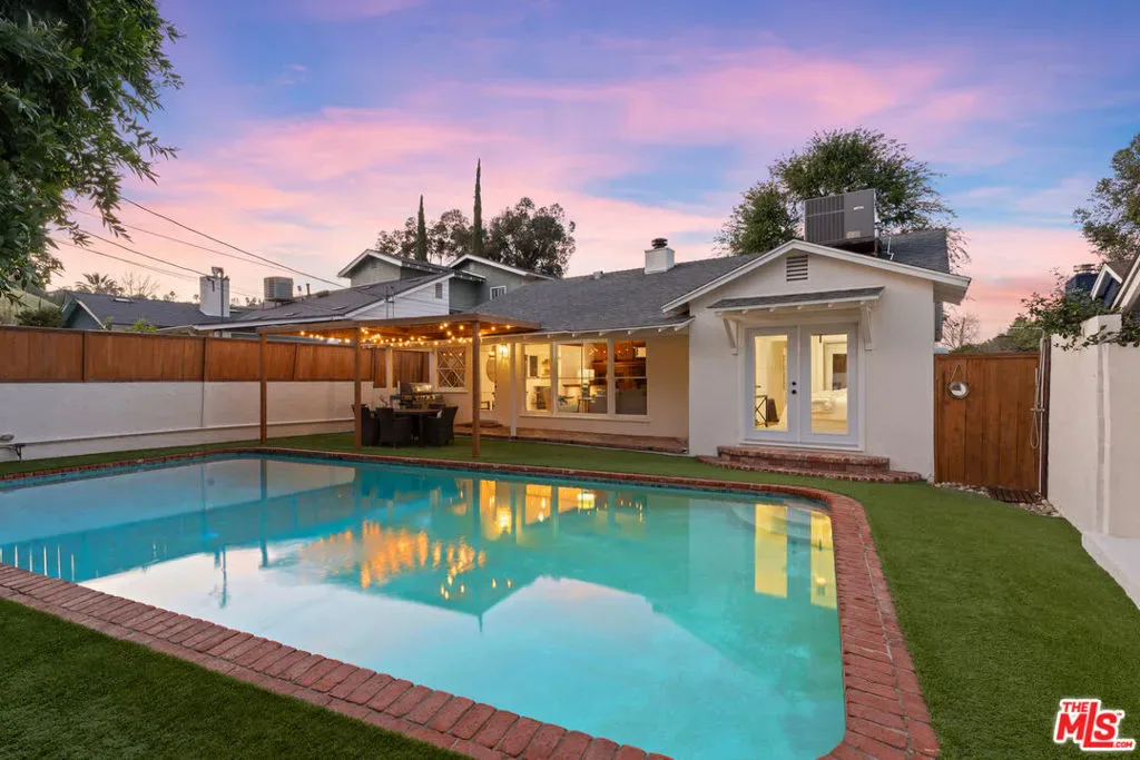 Simply stunning single story home in prime Woodland Hills location. This home has been remodeled with discerning taste, combining contemporary style with charming warmth. With wood floors throughout the main areas, the home exudes clean lines and modern amenities while maintaining its mid century charm. The spacious family room features a beamed vaulted ceiling, fireplace and original bookcase. It opens to the light and bright dining area that leads out to the backyard and patio. The kitchen has quartz countertops and stainless steel appliances with a breakfast bar that is connected to the dining area. The primary suite opens out to the yard and patio, and boasts a built-in closet that lead to the gorgeous modern bath with shower and dual vanity. The large secondary bedroom is assigned to another beautiful bathroom with a freestanding tub/shower enclosure. The third bedroom/den is equipped with hidden closets and a murphy bed so it can function as either a bedroom or office depending upon your needs. The private backyard is an entertainer’s delight and has a large pool flanked by turf. There is a patio and overhang for al fresco dining just off the back of the house, which is also perfect for a coffee break. Behind the pool is a pool cabana covered in wisteria and built for relaxation. With a two car garage and fenced front yard area, this home has everything!