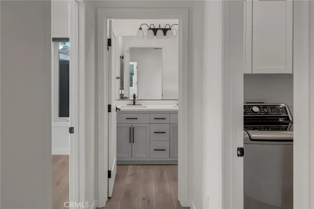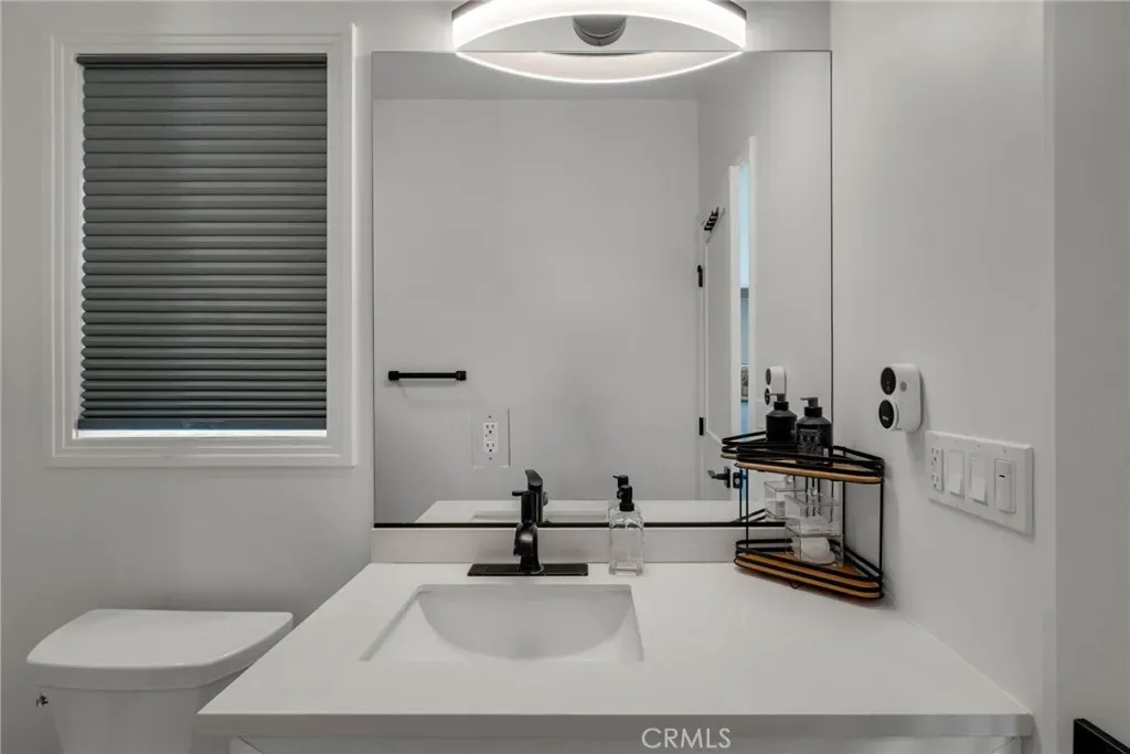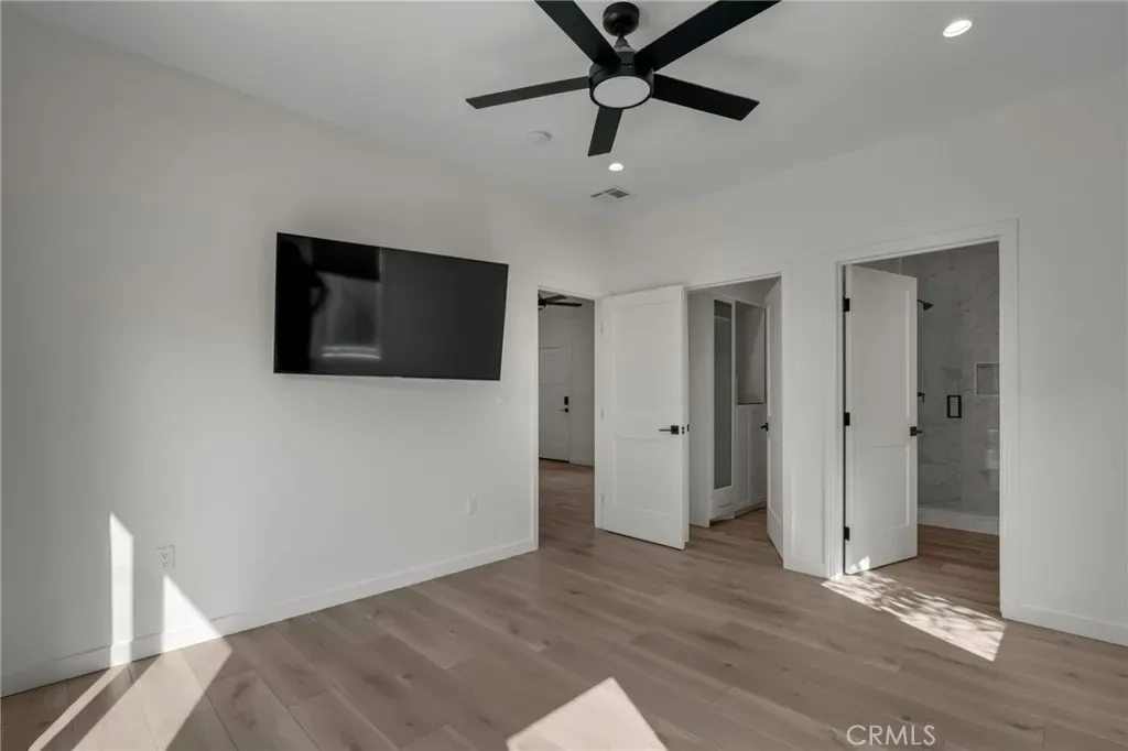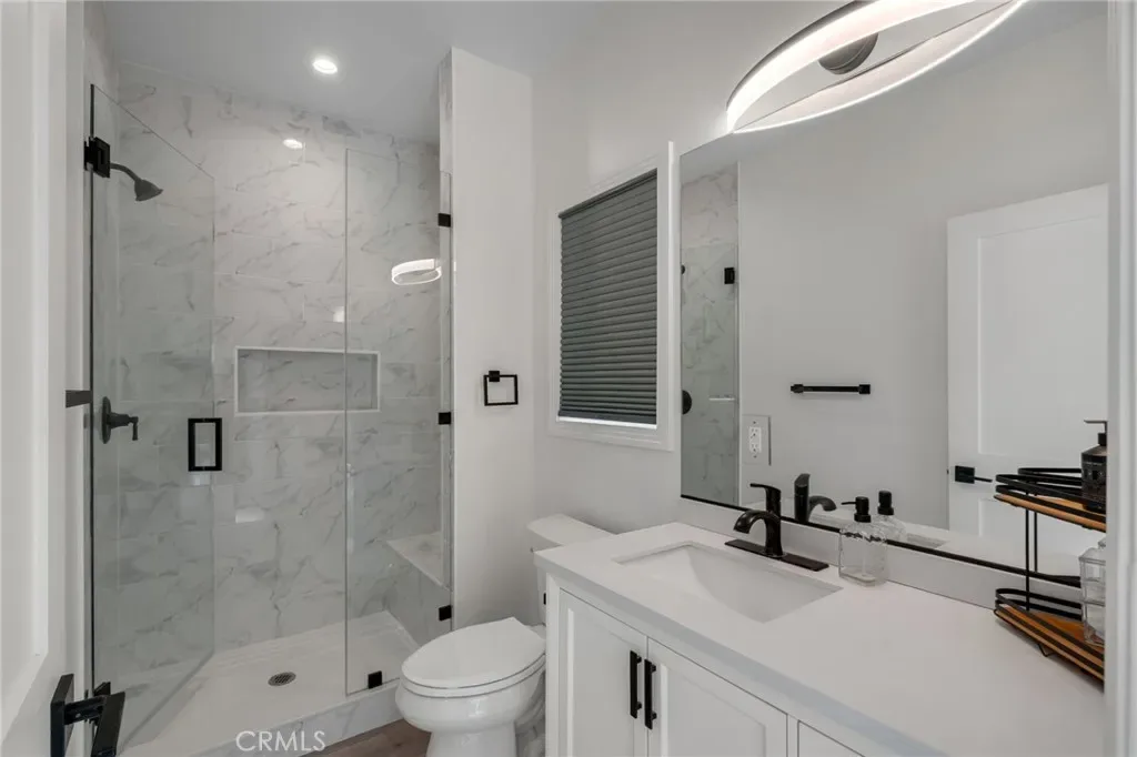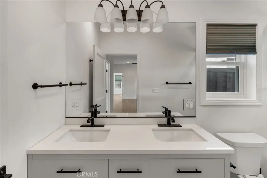 The primary suite includes a generous walk-in closet and a well-appointed bathroom with dual sinks, providing both functionality and a touch of luxury. The second bedroom and full bath offer flexibility for guests, family, or a home office.