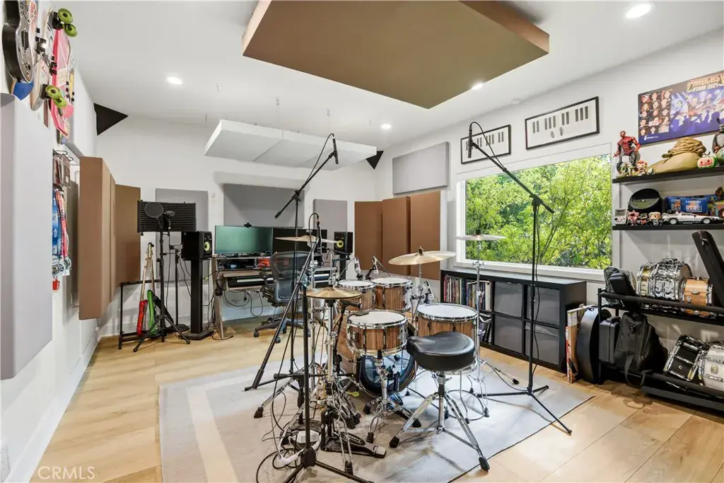 The detached garage has been thoughtfully converted into a fully outfitted recording studio — ideal for musicians, producers, podcasters, or as a private content creation space. In addition, a fully equipped detached guest cottage offers one bedroom and one bathroom, along with a full kitchen and laundry — perfect for extended family, guests, a separate executive workspace, or offering exceptional potential for supplemental rental revenue.