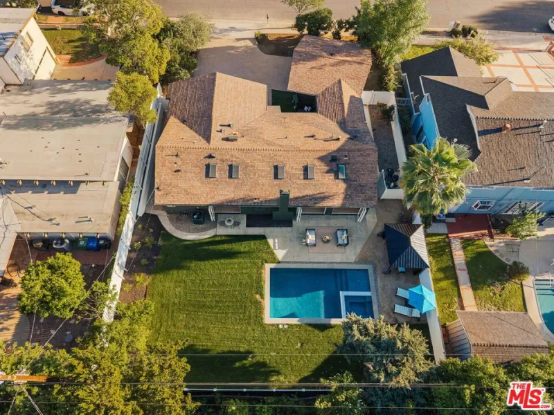 Casa Verde on Mulholland: a masterfully reimagined South of the Boulevard retreat blending modern luxury with timeless California design. This fully redesigned and expanded 4-bedroom, 3-bath residence showcases impeccable craftsmanship, curated finishes, and a seamless indoor-outdoor lifestyle in one of Woodland Hills’ most coveted pockets. A striking dark green faade accented by Palos Verdes stone sets the tone, complemented by drought-tolerant landscaping, new irrigation, and an expansive paver stone driveway. A serene front courtyard with a tranquil fountain creates a warm and inviting entry experience. Inside, soaring vaulted ceilings and skylights flood the open-concept living spaces with natural light. The thoughtfully designed floor plan effortlessly connects the living room, dining area, and chef’s kitchen, anchored by a dramatic mid-century modern fireplace and a stunning custom feature wall. Expansive bi-fold doors dissolve the boundary between indoors and out, creating the ultimate entertainer’s flow. The designer kitchen is a true showpiece, featuring custom walnut cabinetry, white polished concrete countertops, and a suite of premium appliances. A versatile bedroom and bath on the west wing offer the ideal setup for a home office, guest quarters, or private in-law suite. The primary suite is a private sanctuary, complete with vaulted ceilings, a custom fireplace and media feature wall, a spacious walk-in closet, and direct access to the backyard through bi-fold doors. The spa-inspired primary bath boasts exquisite custom tile work, dual vanities, a smart bidet toilet, soaking tub, and a European-style curb-less wet room shower. The backyard is a resort-caliber escape designed for year-round enjoymentfeaturing a newly built pool and spa, expansive lounge areas, covered dining beneath a pergola, lush grassy yard, updated fencing, integrated outdoor speakers, and new irrigation throughout. Additional upgrades include white oak flooring, new windows and doors, new HVAC system with wifi thermostat, fully updated electrical and plumbing, a tankless water heater, new sewer lines, whole-home audio, security camera system, and a fully finished garage with insulation, recessed lighting, new door and motor, and EV charger hookup. Ideally located South of the Boulevard, just moments from premier shopping, dining, and local farmers markets, with easy freeway access and a short drive to Malibu’s world-class beaches. A rare offering, curated by designer and builder Gregory Storm, where architectural significance meets luxurious Southern California living. Welcome home.