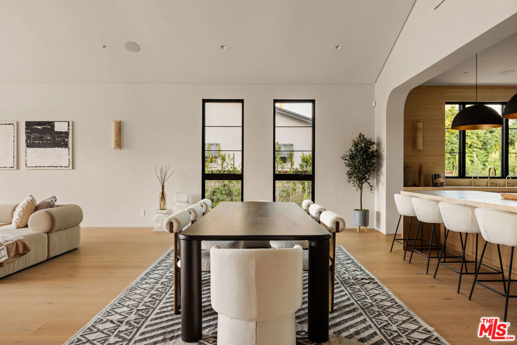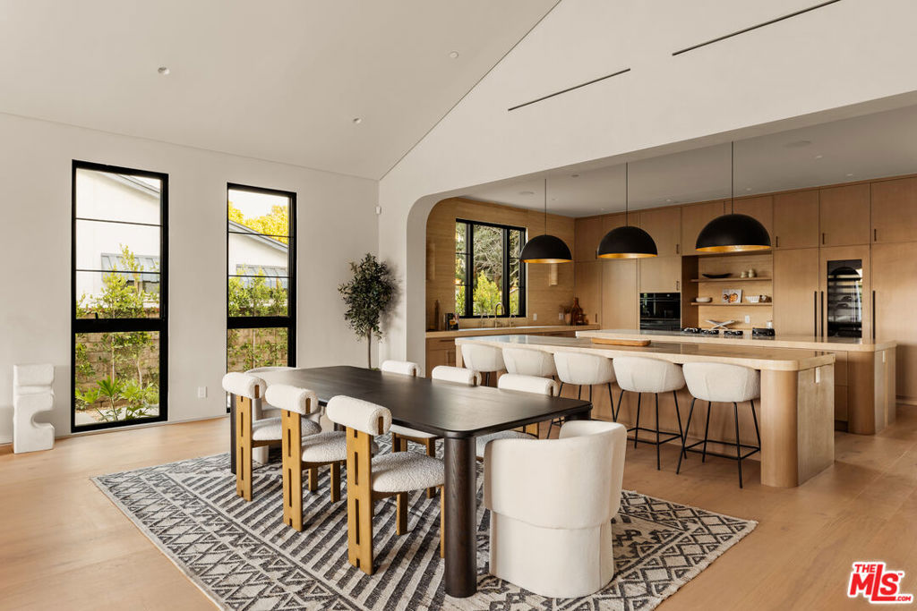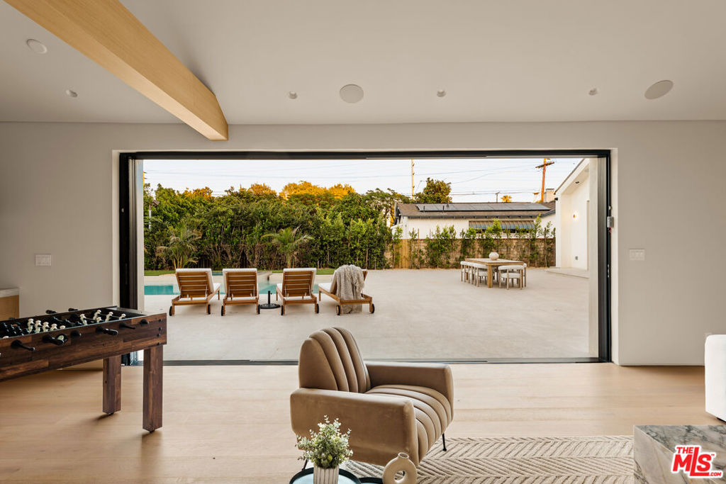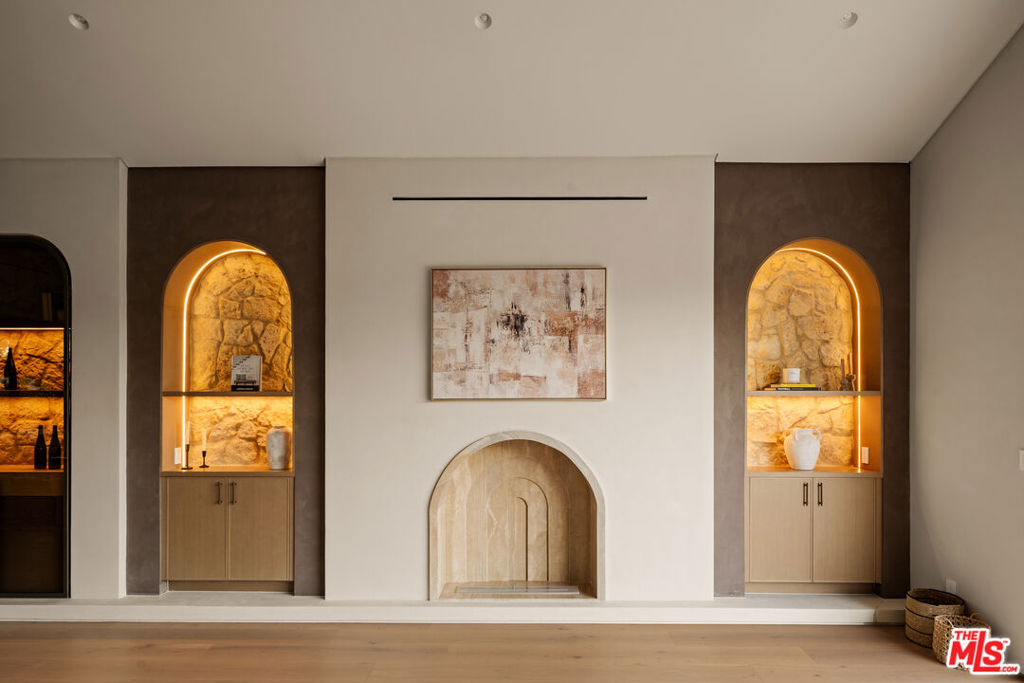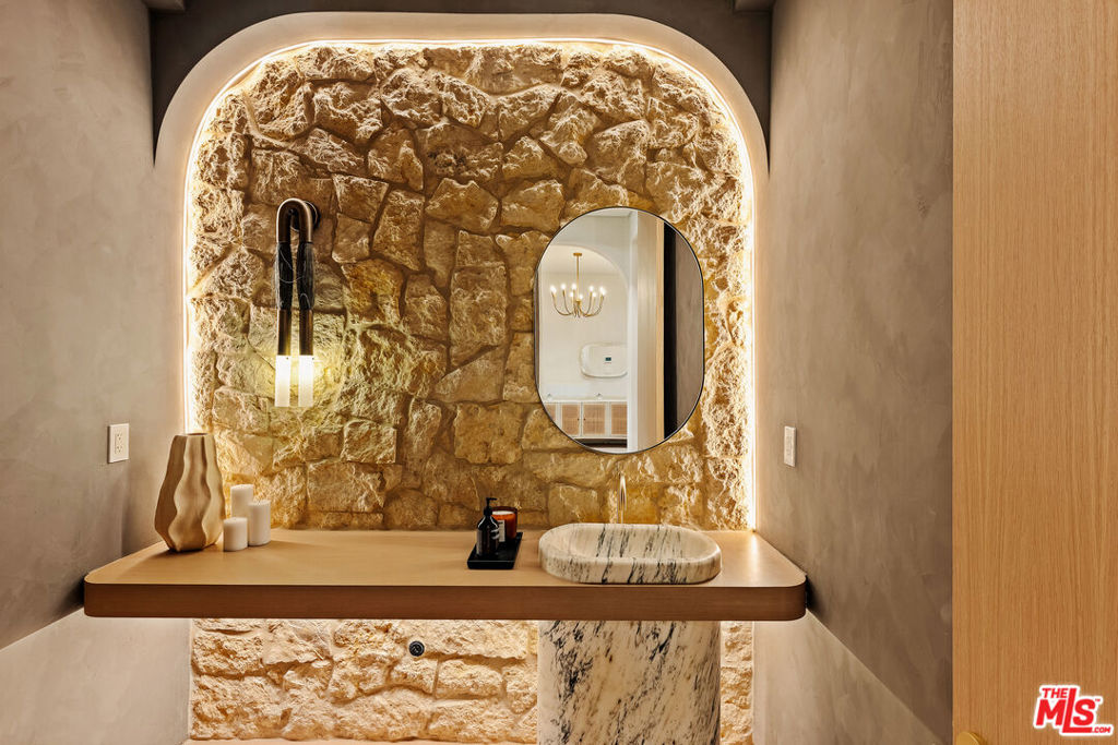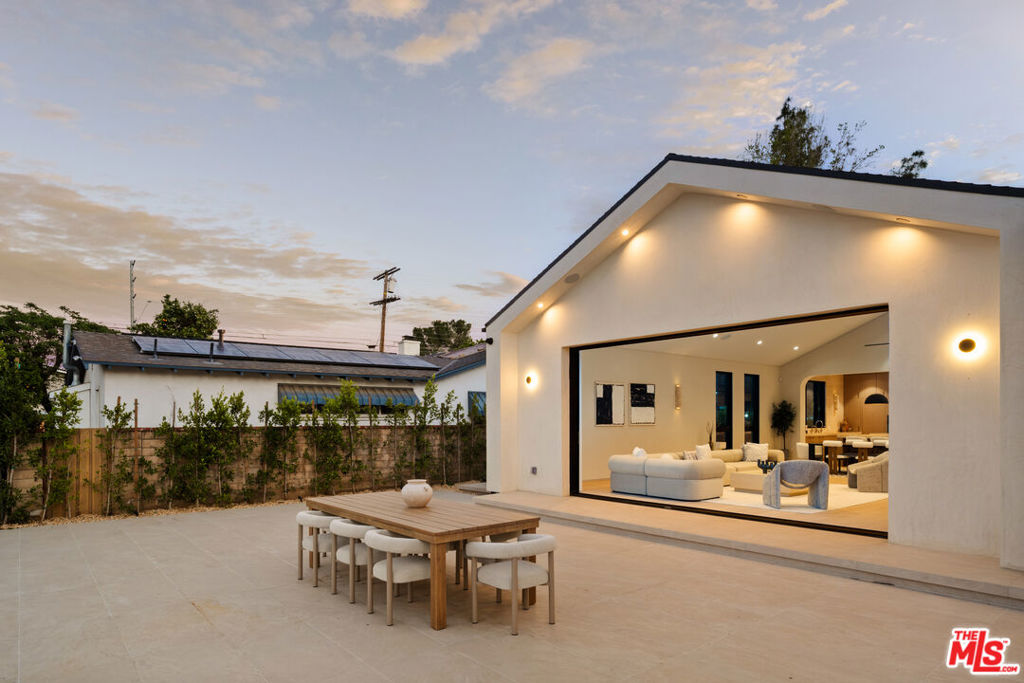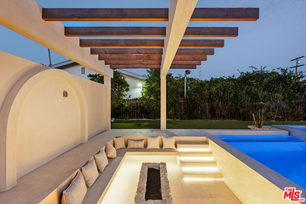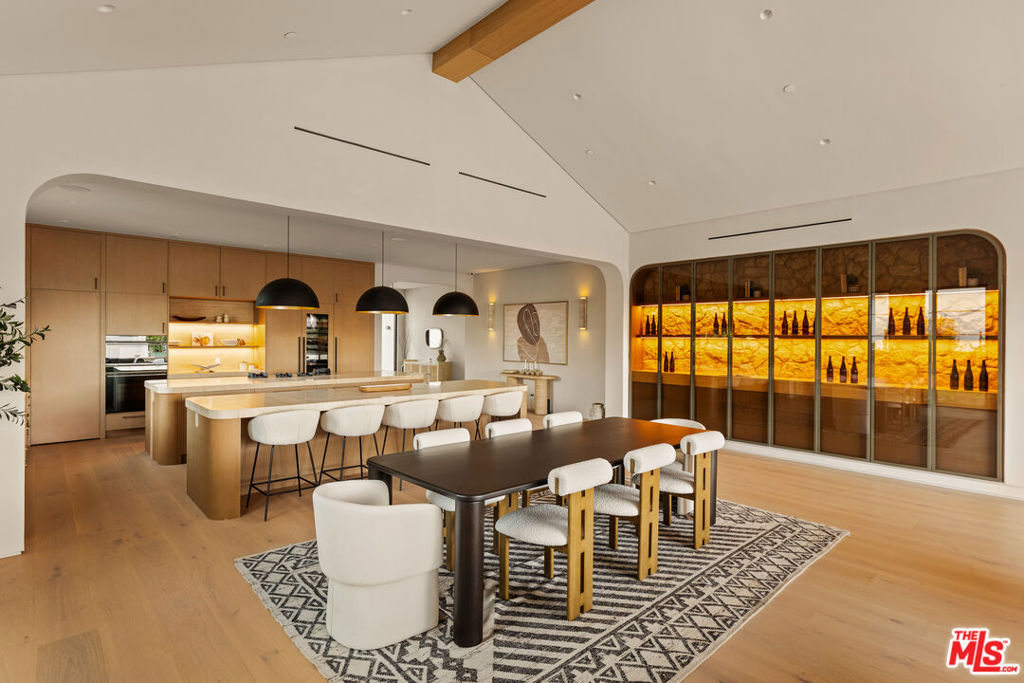 Elevated single-level resort-style residence blending warm natural textures with refined modern design. A soft neutral palette, custom millwork, arched architectural details, stone finishes, and wide-plank wood flooring create a cohesive, magazine-worthy aesthetic throughout. Vaulted ceilings with exposed beams and walls of glass fill the open-concept layout with natural light while creating seamless indoor-outdoor flow.The designer kitchen serves as the heart of the home, anchored by an oversized island with seating, integrated cabinetry, sculptural pendant lighting, and a dramatic stovetop feature wall wrapped in custom stone with a sleek vent hood delivering both striking design and everyday functionality.The approximately 4,000 sq. ft. residence offers four bedrooms and four-and-a-half bathrooms, including a luxurious primary suite designed as a private retreat. The spa-inspired bath features natural stone finishes, refined fixtures, soft ambient lighting, and dual walk-in closets. Secondary bedrooms and baths continue the home’s calm, elevated design aesthetic.Set on an approximately 18,000 sq. ft. lot, the backyard unfolds as a private resort-style oasis featuring a sparkling pool and spa with Baja shelf, a sunken fire pit lounge, expansive entertaining patios, and a private sport court. A detached guest house with a private bathroom offers ideal flexibility for guests, a home office, or creative studio.A rare single-level offering that seamlessly combines modern architecture, comfort, and resort-style living.