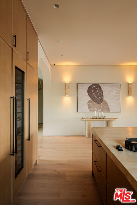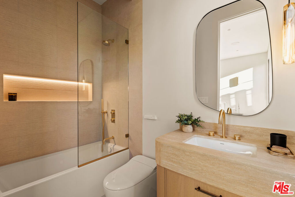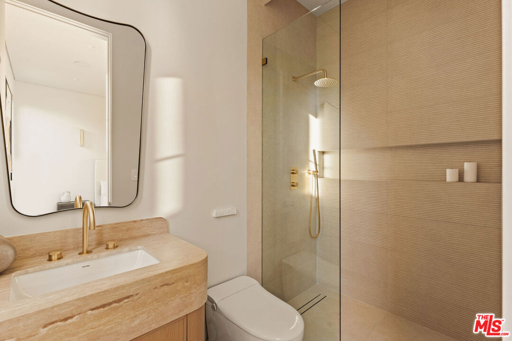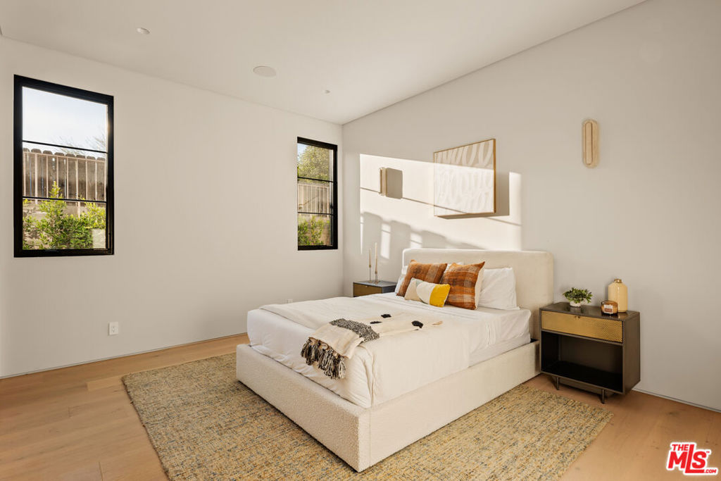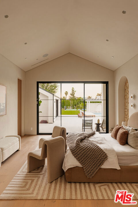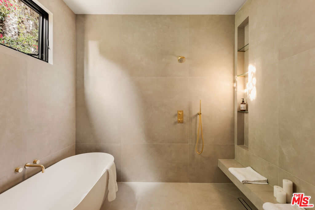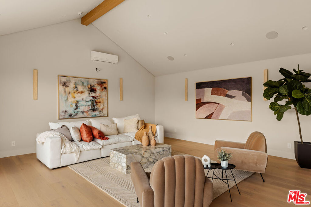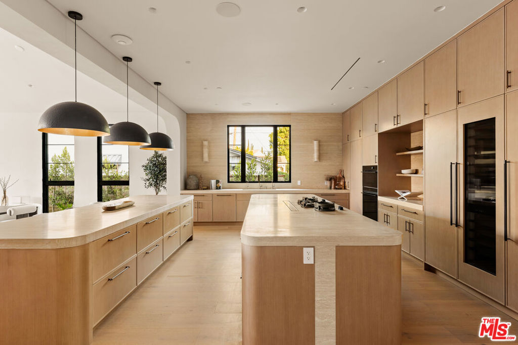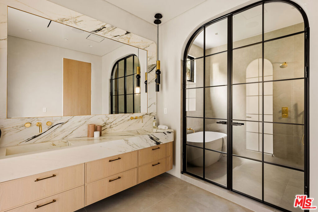 Elevated single-level resort-style residence blending warm natural textures with refined modern design. A soft neutral palette, custom millwork, arched architectural details, stone finishes, and wide-plank wood flooring create a cohesive, magazine-worthy aesthetic throughout. Vaulted ceilings with exposed beams and walls of glass fill the open-concept layout with natural light while creating seamless indoor-outdoor flow.The designer kitchen serves as the heart of the home, anchored by an oversized island with seating, integrated cabinetry, sculptural pendant lighting, and a dramatic stovetop feature wall wrapped in custom stone with a sleek vent hood delivering both striking design and everyday functionality.The approximately 4,000 sq. ft. residence offers four bedrooms and four-and-a-half bathrooms, including a luxurious primary suite designed as a private retreat. The spa-inspired bath features natural stone finishes, refined fixtures, soft ambient lighting, and dual walk-in closets. Secondary bedrooms and baths continue the home’s calm, elevated design aesthetic.Set on an approximately 18,000 sq. ft. lot, the backyard unfolds as a private resort-style oasis featuring a sparkling pool and spa with Baja shelf, a sunken fire pit lounge, expansive entertaining patios, and a private sport court. A detached guest house with a private bathroom offers ideal flexibility for guests, a home office, or creative studio.A rare single-level offering that seamlessly combines modern architecture, comfort, and resort-style living.