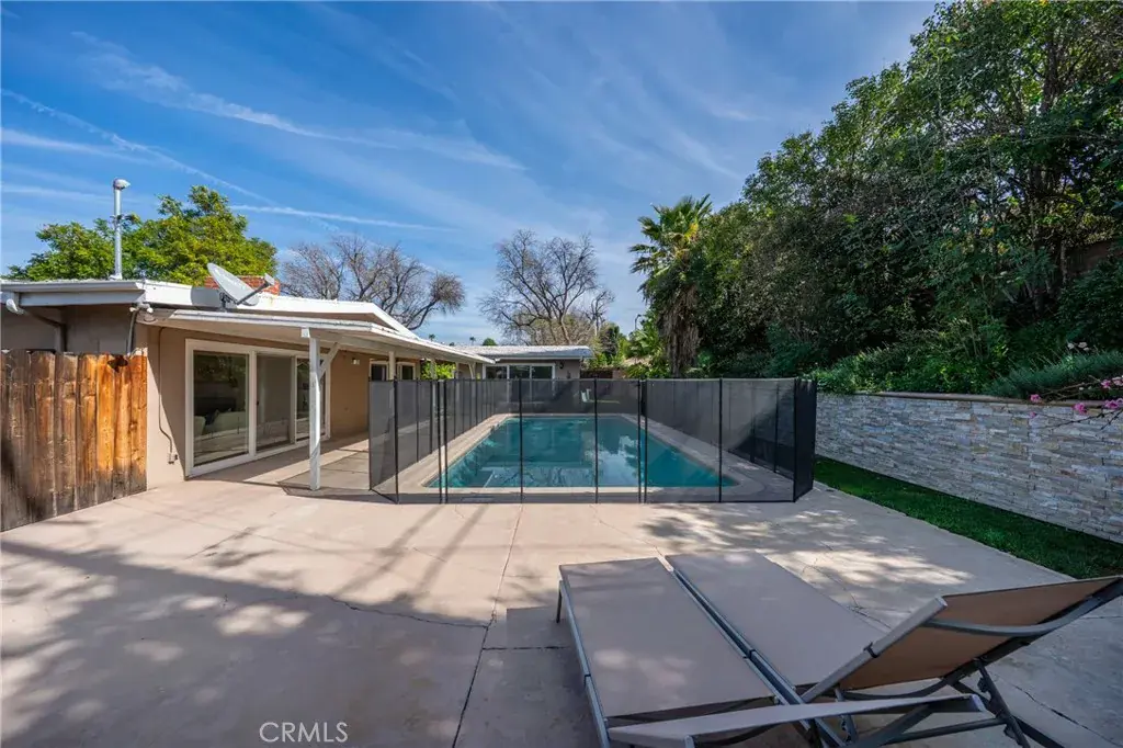 This beautiful single-story 4-bedroom, 3.5-bath home is ideally situated on the border of Woodland Hills and Calabasas, within walking distance to Calabasas Lake and The Commons. The house featuring high ceilings and a well-designed floor plan, it offers brand-new flooring throughout. The spacious living and family rooms flow seamlessly into a stunning backyard—perfect for entertaining. Enjoy a large pool, lush grassy area, covered patio, and ample space for outdoor BBQs and gatherings. The kitchen showcases vintage designer cabinetry, granite countertops, stainless steel appliances, a built-in refrigerator, and a Thermador 4-burner stove with electric griddle. A cozy breakfast area completes the space. This home includes two private primary suites, each with sliding glass doors opening to the serene backyard and pool. The additional two bedrooms share a Jack-and-Jill bathroom, plus there is a convenient hallway bath—ideal for families or guests. Located within the highly sought-after Calabash Elementary and El Camino Charter school districts. Don’t miss this exceptional opportunity to call this home your own!