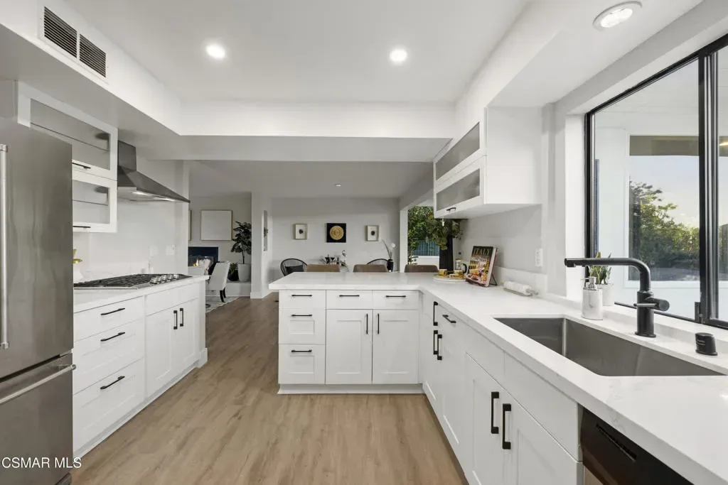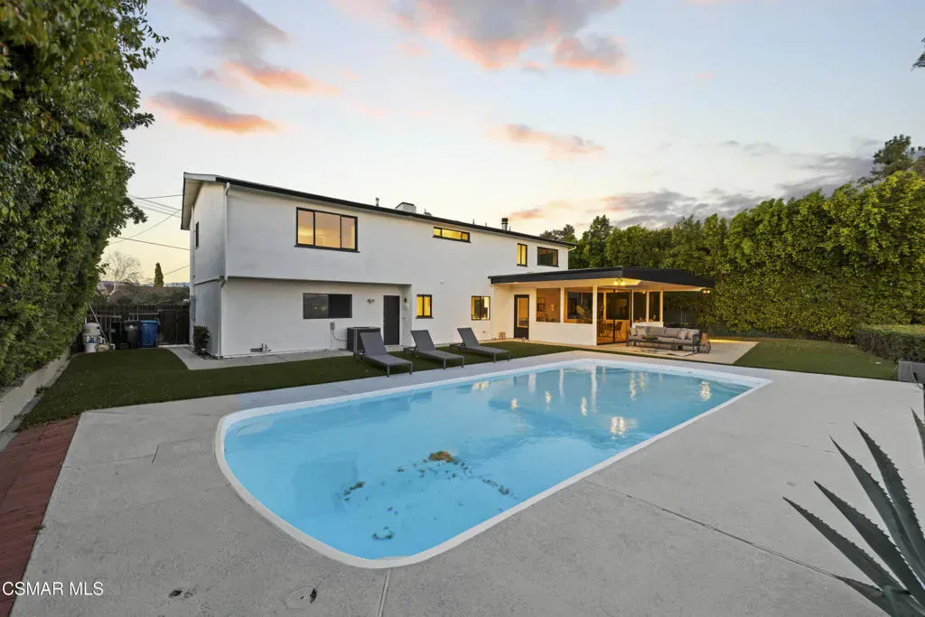 Completely renovated with breathtaking views, this stunning Woodland Hills residence blends modern luxury with the relaxed lifestyle the West Valley is known for. Set on a generous lot in one of the most desirable pockets of Woodland Hills, the home has been thoughtfully redesigned from top to bottom, creating a move in ready retreat that feels both elevated and inviting.Walls of glass frame sweeping hillside and valley views while filling the home with natural light. The open concept layout flows seamlessly through beautifully updated living spaces and a designer kitchen, creating the perfect setting for both everyday living and effortless entertaining. Every detail has been upgraded with a fresh modern aesthetic, giving the home the feel of brand new construction.The backyard is a true private escape featuring a sparkling pool, expansive outdoor space, and plenty of room to relax or host unforgettable gatherings while enjoying the surrounding views. The large lot provides privacy and versatility that is hard to find.Located just minutes from the shops, restaurants, and vibrant lifestyle along Ventura Boulevard and the Topanga area, the home also benefits from access to highly regarded schools and nearby parks and recreation. Woodland Hills is known for its unique balance of peaceful residential living while still being close to some of the best dining, shopping, and entertainment in the Valley.A rare opportunity to own a beautifully renovated view home with a pool in one of Woodland Hills most sought after neighborhoods.