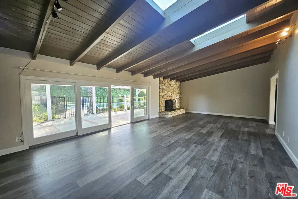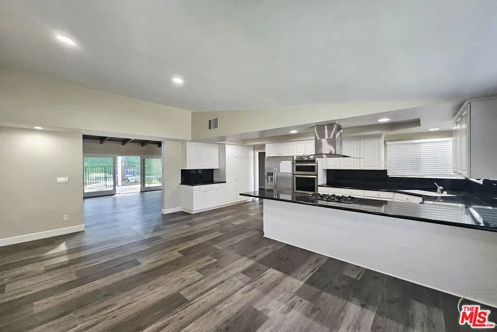 4 BED/2 BATH COMPLETELY UPDATED HOME NEAR WARNER CENTER WITH THE FINEST DINING AND SHOPPING!!! Come see this beautiful dream home that brings the best of elegance and modern living. Enter this home with luxury vinyl flooring and open floor plan. Cozy stone veneer fireplace. Living room with a gorgeous wood beam vaulted ceiling, that overlooks an expansive patio with modern sliding doors, opens up to an enclosed back yard. Spacious kitchen with Granite counter tops. Plenty of kitchen cabinets for storage. Separate cooktop and wall oven, microwave, dishwasher, refrigerator included! Recessed lighting throughout kitchen and bedrooms. Large Master bedroom with spacious wall closets. The celestial master bathroom features LED lighted mirror with Bluetooth, separate walk-in rain shower with a handled shower, and dual sink vanity with nice backsplash. An impeccable jacuzzi spa tub with Bluetooth and accent lighting. Second bathroom is also brand new with Bluetooth mirrors and accent lighting. Ample outdoor living space with a large, very long patio. Resort style living with a verdant garden with mature foliage. Backyard pool for entertainment. 2 Car Garage included! Minutes to the beach, easy freeway access. Close to Highly desirable school district ranked high school in LAUSD.