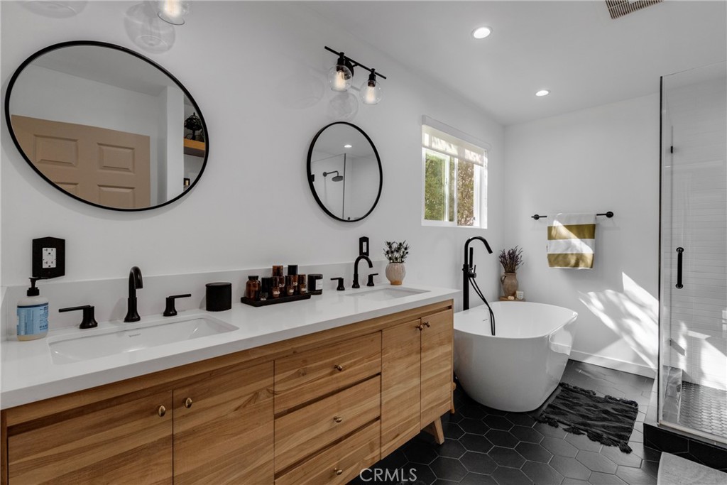Located on a cul-de-sac street in a desirable area of Woodland Hills, this sweet, remodeled ranch home just oozes charm. The large lot features a backyard haven – plenty of space to relax and play. The fully-remodeled kitchen has all stainless newer appliances, including a Gas cooktop and wall ovens and a cozy banquet breakfast nook. Other features include a separate laundry room with well-planned storage making superb use of space. With its large dining room and adjacent living room with fireplace, entertaining is a breeze. The primary bedroom has its own oasis-like bathroom including a standalone shower and separate soaking tub. The other two bedrooms are well-sized. This home is close to the best schools including El Camino Real Charter and Hale Charter and located in the center of this quiet sought-after neighborhood. Equidistant to the Westfield Mall or the Commons of Calabasas – all the best in shopping and dining close to home.