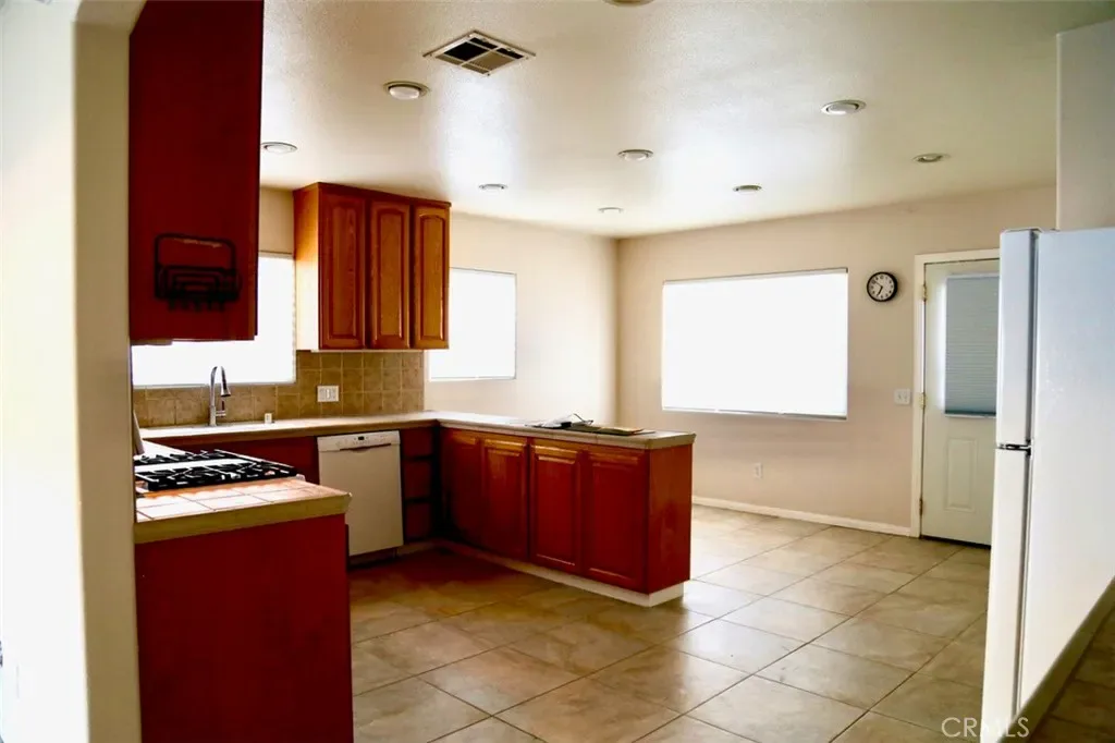 The back unit (4815 Topanga Canyon Blvd) offers approximately 1,484 square feet with 3 bedrooms and 2 full bathrooms. This light-filled home features newer windows for added quiet, tile flooring throughout the main living areas, ceiling fans, and central air and heat. The cozy living room includes a fireplace, while the spacious updated kitchen offers ample counter space and a convenient breakfast bar. The expansive primary suite includes a walk-in closet and an updated bathroom with dual sinks. Bedrooms are carpeted, and the unit includes a washer, dryer, and refrigerator. A two-car garage with roll-up door is also included.