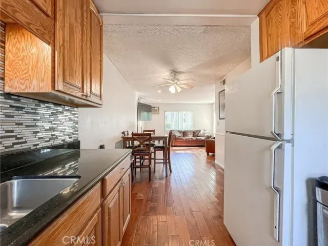 Exceptional opportunity in a prime Woodland Hills location. This rare and well-maintained duplex offers excellent investment potential and strong rental appeal. The front unit (4813 Topanga Canyon Blvd) features 2 bedrooms and 1 full bathroom across approximately 700 square feet. This inviting space includes an updated kitchen with granite countertops, stainless steel stove and sink, a full bathroom, and a spacious living room with wood flooring. Both bedrooms are carpeted, and the home includes central air and heat, three ceiling fans, and newer dual-pane windows that provide a quiet interior. The unit also includes a single-car garage with a roll-up door and laundry in the garage. Currently occupied by a great tenant.