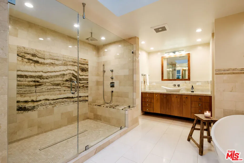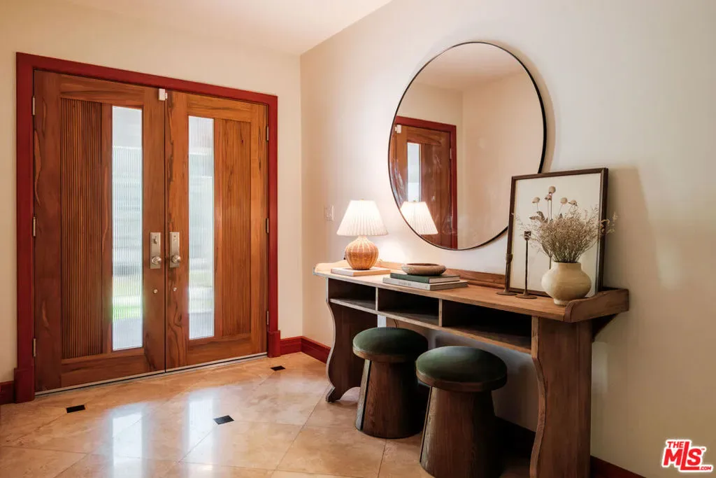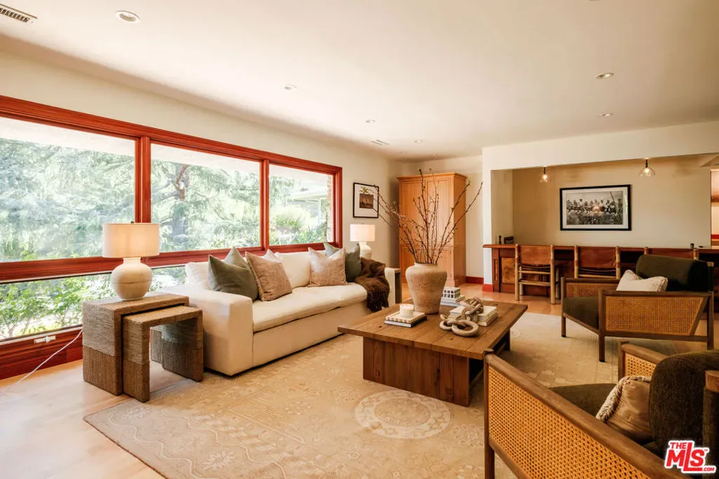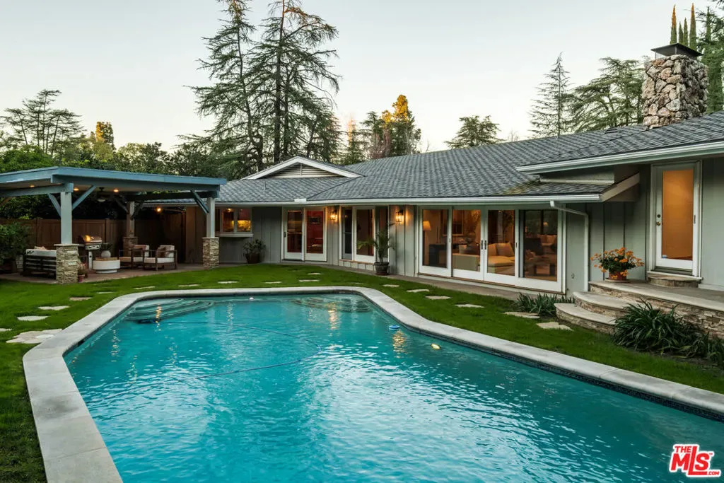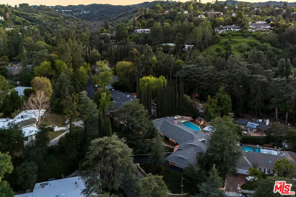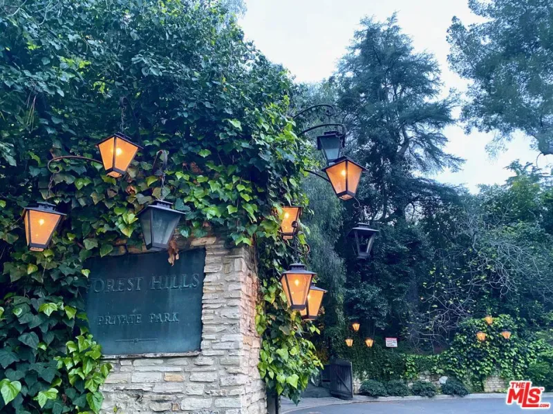 Discover the enchanting allure of 4975 Queen Florence Lance, a timeless Single-Story Estate in Woodland Hills’ most desirable enclave Forrest Hills, a neighborhood steeped in Hollywood history and prestige. Set on a peaceful cul-de-sac along one of the neighborhood’s most coveted and picturesque streets, this exceptional 4,975 sq ft residence offers luxurious single-level living on a grand scale. Surrounded by nature and some of the most beautiful tree-lined walking streets in Woodland Hills. Featuring 6 bedrooms and 6 bathrooms, the property radiates timeless beauty with exquisite details and natural earthen materials used throughout, creating an organic and elegant atmosphere. Privately nestled behind lush, mature landscaping and a canopy of trees, the property exudes both elegance and tranquility. Expansive custom windows flood the interiors with natural light while framing picturesque views of verdant greenery from nearly every room. The thoughtfully designed floor plan offers generous living spaces, all anchored by seamless transitions to the outdoor grounds. Inside, the home is equally well-appointed for modern living, featuring custom built-ins throughout and exquisite burl wood carpentry that adds warmth, richness, and architectural character to the interiors. Additional highlights include a spacious walk-in pantry, a large laundry room with an extra refrigerator and abundant storage, and a custom-built mud room designed to keep daily life organized while maintaining the home’s clean, sophisticated aesthetic. A luxurious primary suite retreat designed for both comfort and sophistication, featuring custom windows that frame serene views of lush greenery and fill the space with beautiful natural light. A private patio extends the suite outdoors, offering a peaceful setting. The suite also includes a massive, custom-built walk-in closet creating a boutique-like dressing experience. The spa-inspired primary bathroom showcases a curated palette of timeless natural stone and refined finishes. A sculptural soaking tub, enveloped in luminous onyx, serves as a stunning focal point, complemented by a walk-in shower with matching onyx surrounds for a cohesive ambiance. Dual vanities are topped with elegant Taj Mahal quartzite countertops, while custom walnut cabinetry provides abundant storage. Warm Cream Marfil marble tile clads the walls, while honed limestone flooring grounds the space natural sophistication. Thoughtfully designed with elevated craftsmanship and enduring materials, this primary suite offers a tranquil experience for everyday living. The kitchen is equally impressive, featuring custom solid wood cabinetry paired with premium Wolf appliances, including a professional-grade range, and a Sub-Zero refrigerator for superior performance. This kitchen provides a refined yet highly practical culinary space. Step outside to a modern resort-style pool featuring soothing waterfall features and an elevated spa, surrounded by incredible landscaping, mature trees, and vibrant plantings that create a private oasis. A cozy gas fire pit and custom outdoor gazebo elevate the space into a private retreat designed for both relaxation and entertaining. A massive 3-car garage provides abundant space, complemented by a dedicated storage room offering exceptional functionality and organization rarely found in single-story homes of this caliber. With its rare combination of size, single-story convenience, and six full bedrooms with en-suite baths, this residence offers flexibility for multigenerational living, guests, or work-from-home needs. Ideally located near top-rated schools, upscale shopping and dining, and the scenic trails of the Santa Monica Mountains, all just minutes from Calabasas Commons and a short drive to Malibu’s iconic beaches, this is a rare opportunity to own a premier Forrest Hills estate on prestigious Queen Florence Lane.