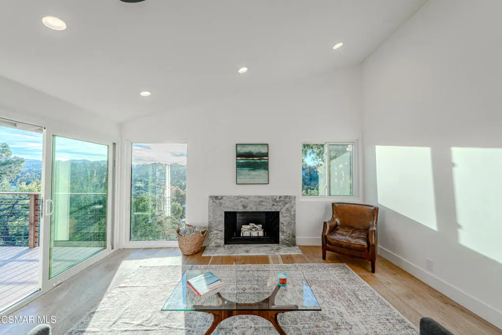 This mid-century modern 2 bedroom, 2 bath home is situated South of the Boulevard in the hills above the buzz of the city. Beautifully and thoughtfully updated, including new windows throughout that flood the house with natural light and offer gorgeous treetop and mountain views. This home features an open floor plan, complete with vaulted ceilings and skylights. Enjoy golden hour and pink sunsets from the deck and nearly every room of the house. The primary bedroom has an en suite bath with a herringbone tiled accent wall. The secondary bedroom, with closet and sliding door to the private side yard, is currently being used as an office – a wall would complete this as a bedroom. The long driveway to the attached two car garage offers plenty of coveted off street parking. Mature cacti and succulents line the steps to the front door, while the large 17,000sf lot offers endless opportunity to create the backyard of your choosing. Mechanical systems have been upgraded and the property features ample rooftop solar panels, a Tesla powerwall battery and battery monitoring system.