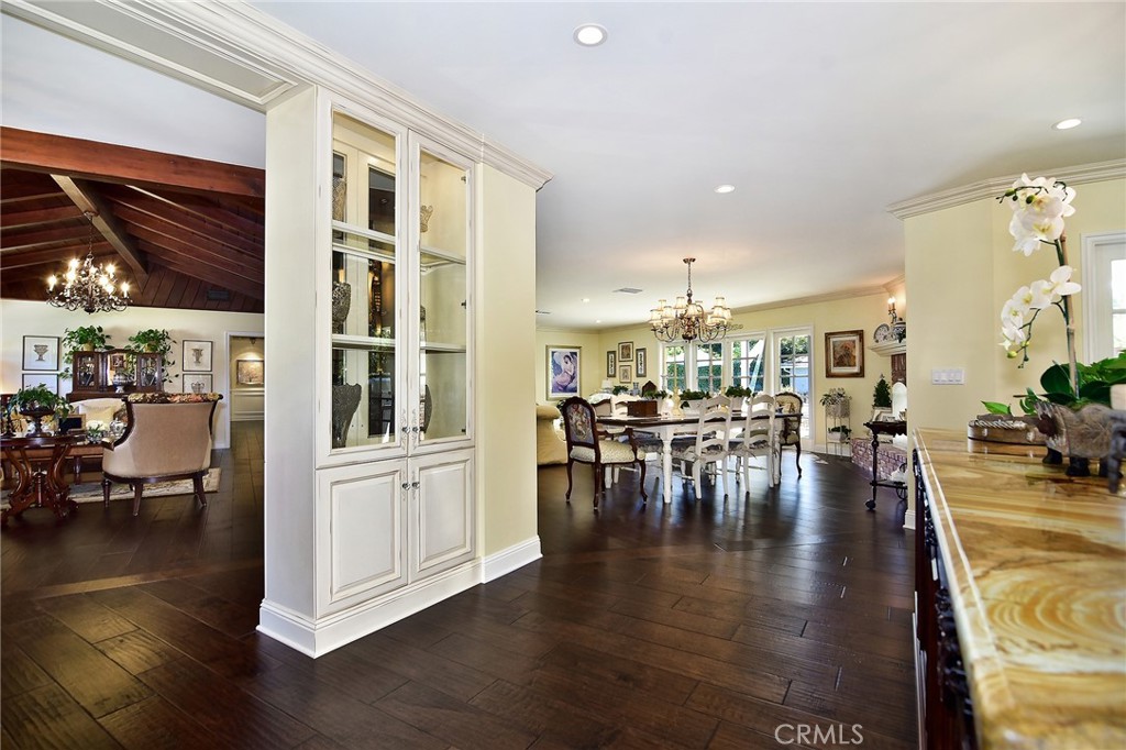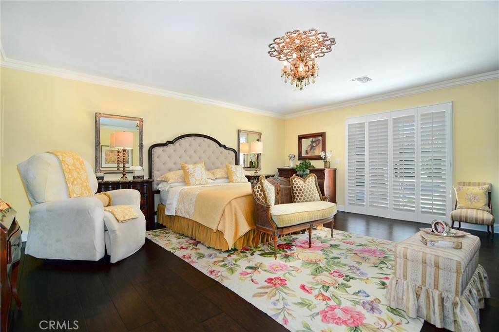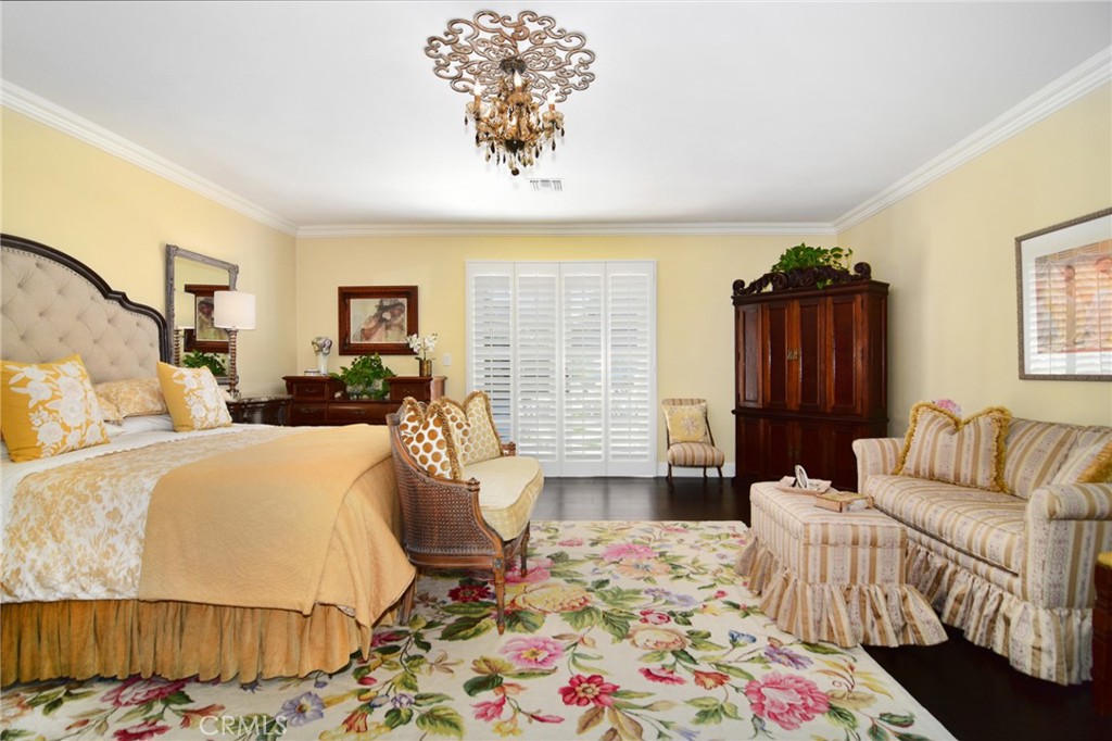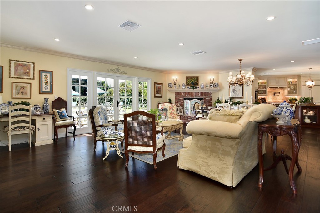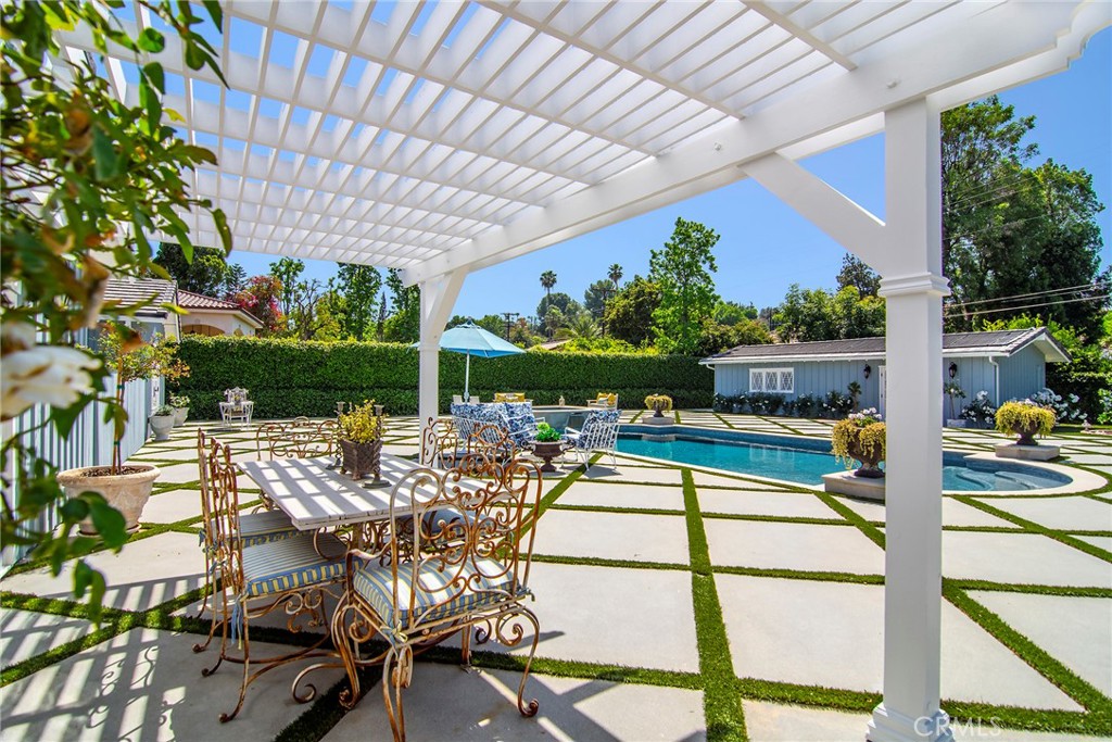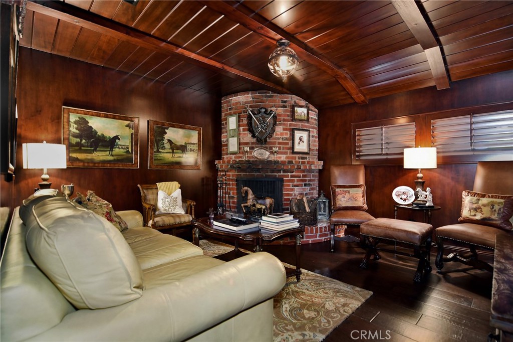 Experience the dazzling restoration of this rustic style single-level ranch affording a classic “olde Hollywood” vibe. Situated on a flat nearly half-acre of sensational grounds featuring over 150 ft. of gated frontage adorned with roses, circular drive, brick accents, lush lawn & slate roof. Love at first sight is a quite the possibility here. An incredible over 600 sq. ft. guest house elevates it to another level. Both inside and out, the vision and style of its proud owners are prominently displayed. Gorgeous wood flooring blankets the interior. Living room with an inviting fireplace and the allure of original A-framed wood ceilings define this cherished space. A spectacular dream kitchen offering custom cabinetry, quality appliances and a massive center-island with exquisite Palomino granite adjoins a gorgeous butler’s pantry. Spacious & bright family room & formal dining benefit from a beautiful brick fireplace. Unique convertible den is a favored destination enhanced by a distinct curved fireplace. Your amazing primary-suite delivers a refined walk-in closet, French doors to the rear & an ultra-luxurious bath where white onyx walls & floors, soothing spa tub & a 6’ shower provide a true haven within. Two additional en-suites with stunning baths are sure to please. Outside, these glorious grounds truly rival that of a 5-star resort. Refreshing solar-heated pool and spa framed by the elegance of concrete decking with faux grass definition is just divine. An ideal covered dining and relaxation area offer a cozy fireplace & T.V. Bountiful fruit trees and a basement/storage room add to the appeal. Sought after charter schools too. So very special… this one should not be missed.