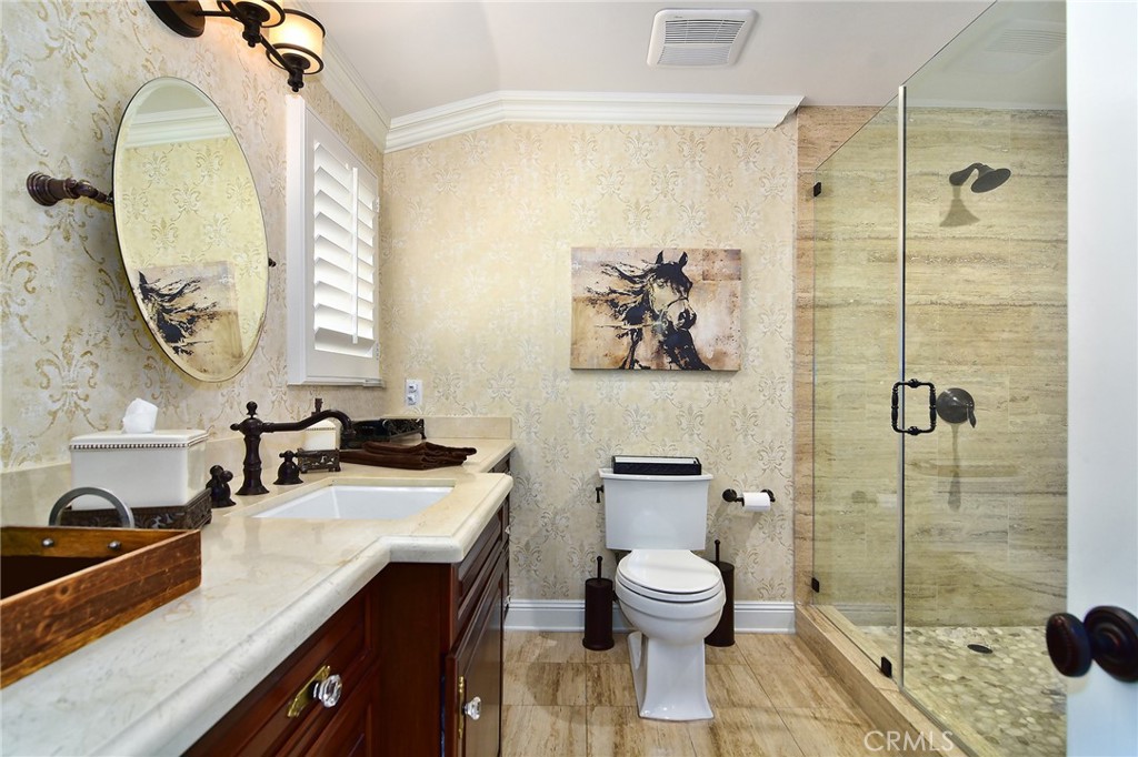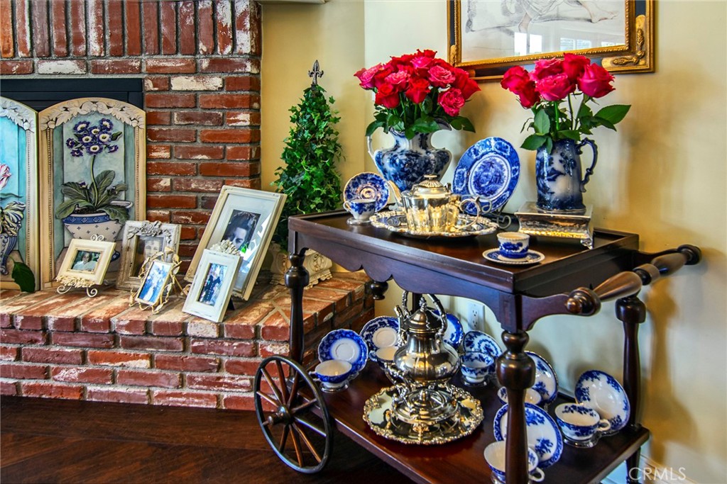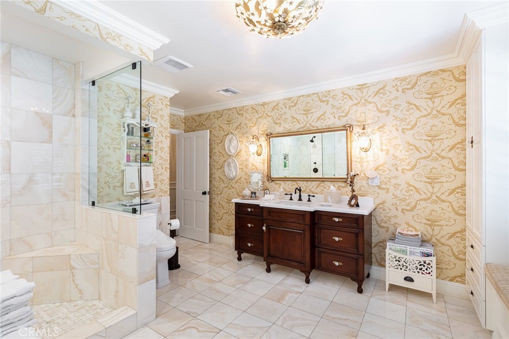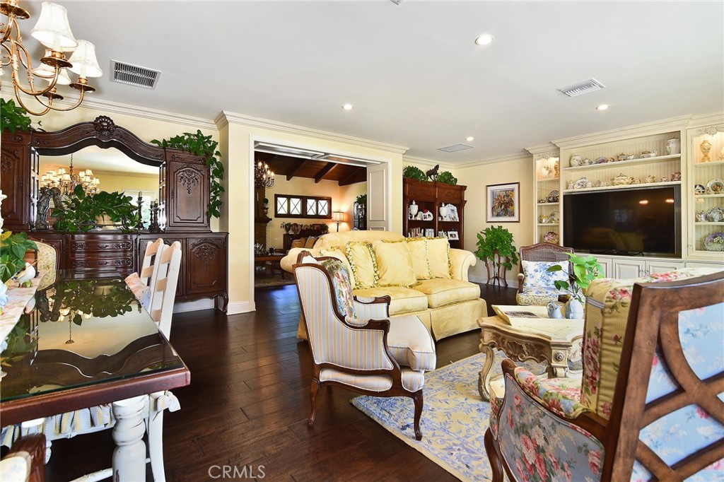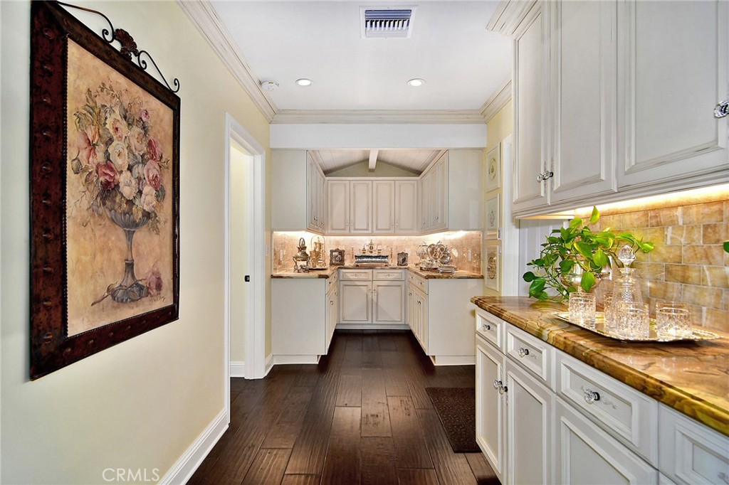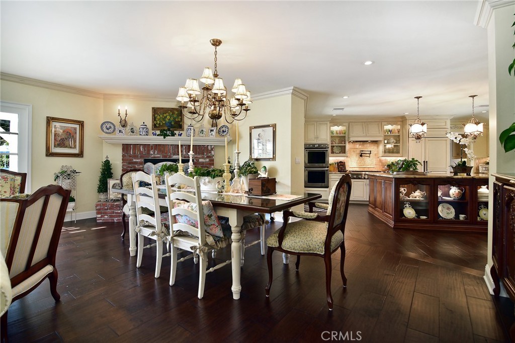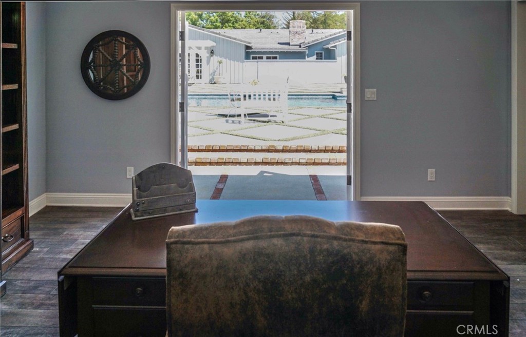 Experience the dazzling restoration of this rustic style single-level ranch affording a classic “olde Hollywood” vibe. Situated on a flat nearly half-acre of sensational grounds featuring over 150 ft. of gated frontage adorned with roses, circular drive, brick accents, lush lawn & slate roof. Love at first sight is a quite the possibility here. An incredible over 600 sq. ft. guest house elevates it to another level. Both inside and out, the vision and style of its proud owners are prominently displayed. Gorgeous wood flooring blankets the interior. Living room with an inviting fireplace and the allure of original A-framed wood ceilings define this cherished space. A spectacular dream kitchen offering custom cabinetry, quality appliances and a massive center-island with exquisite Palomino granite adjoins a gorgeous butler’s pantry. Spacious & bright family room & formal dining benefit from a beautiful brick fireplace. Unique convertible den is a favored destination enhanced by a distinct curved fireplace. Your amazing primary-suite delivers a refined walk-in closet, French doors to the rear & an ultra-luxurious bath where white onyx walls & floors, soothing spa tub & a 6’ shower provide a true haven within. Two additional en-suites with stunning baths are sure to please. Outside, these glorious grounds truly rival that of a 5-star resort. Refreshing solar-heated pool and spa framed by the elegance of concrete decking with faux grass definition is just divine. An ideal covered dining and relaxation area offer a cozy fireplace & T.V. Bountiful fruit trees and a basement/storage room add to the appeal. Sought after charter schools too. So very special… this one should not be missed.