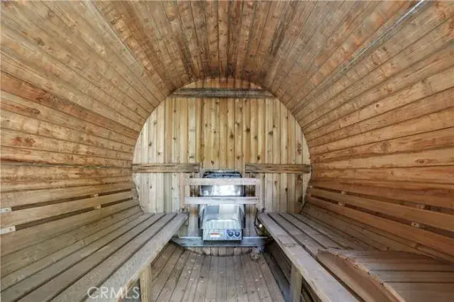 The upgraded kitchen features premium appliances, generous prep space, and a seamless flow into the living and dining areas — ideal for daily living or structured residential use. Additional highlights include a dedicated laundry room, mini-bar area, attached two-car garage, and a custom-built sauna creating a rare wellness retreat experience not typically found in rental homes.