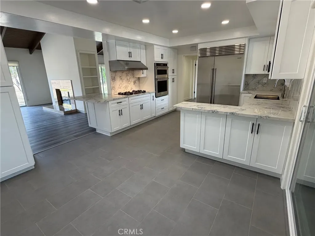 Stylish and updated 2310 sq. ft. single-story Woodland West home on a cul-de-sac in a prime neighborhood near El Camino Charter High School. This beautiful home features a Brand-new kitchen with a Sub-Zero refrigerator, Bertazonni cooktop, brand-new oven and microwave, quartz counter, and generous storage. Fresh paint, new roller blinds, and new LED recessed lighting create a bright, move-in-ready feel. The open living and dining rooms offer a beautiful 2-sided marble fireplace that provides a seamless flow for everyday living and entertaining. A stylish concrete tile roof complements the home’s attractive curb appeal. The spacious primary suite includes a custom walk-in closet, a beautiful master bathroom with custom tile, 2 sinks, a spa tub, and a separate large walk-in shower. Additional highlights include a 2-car attached garage with direct kitchen access, a second refrigerator in the garage, and a newer washer and dryer. The large backyard is in the process of being enhanced with a desert landscape, with completion in the next couple of weeks. Located in the award-winning Lockhurst, Hale, and El Camino school district. Fantastic location within minutes of the 101 freeway and the Calabasas Commons.