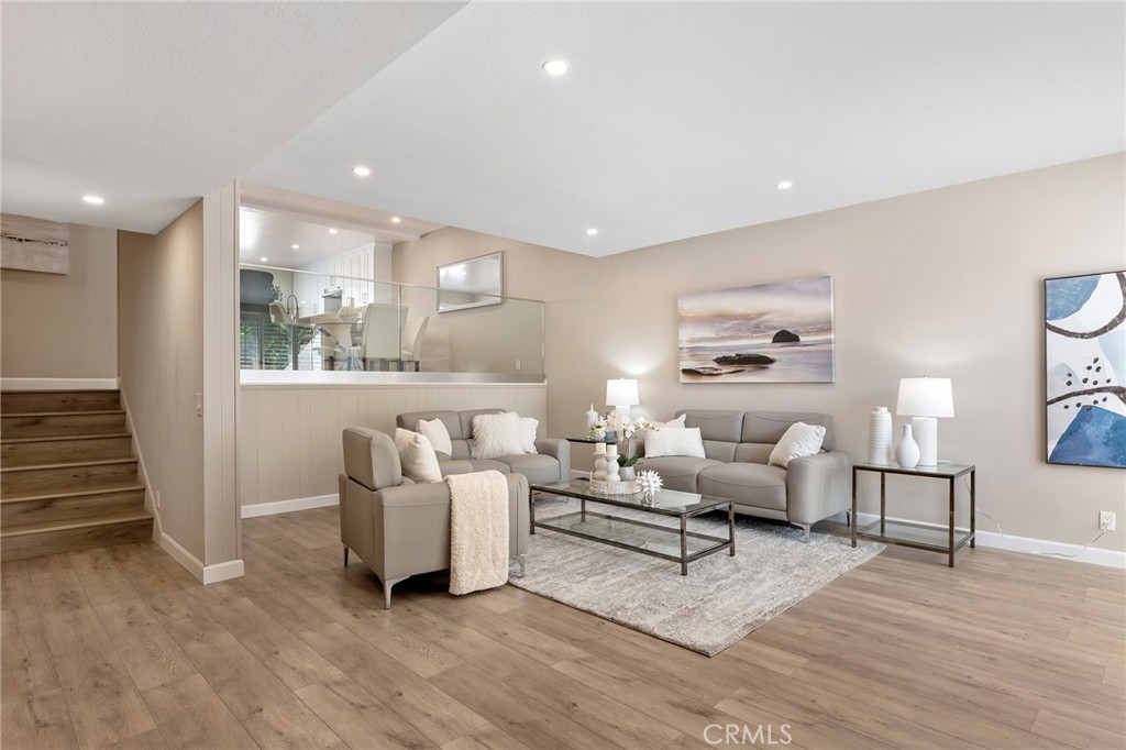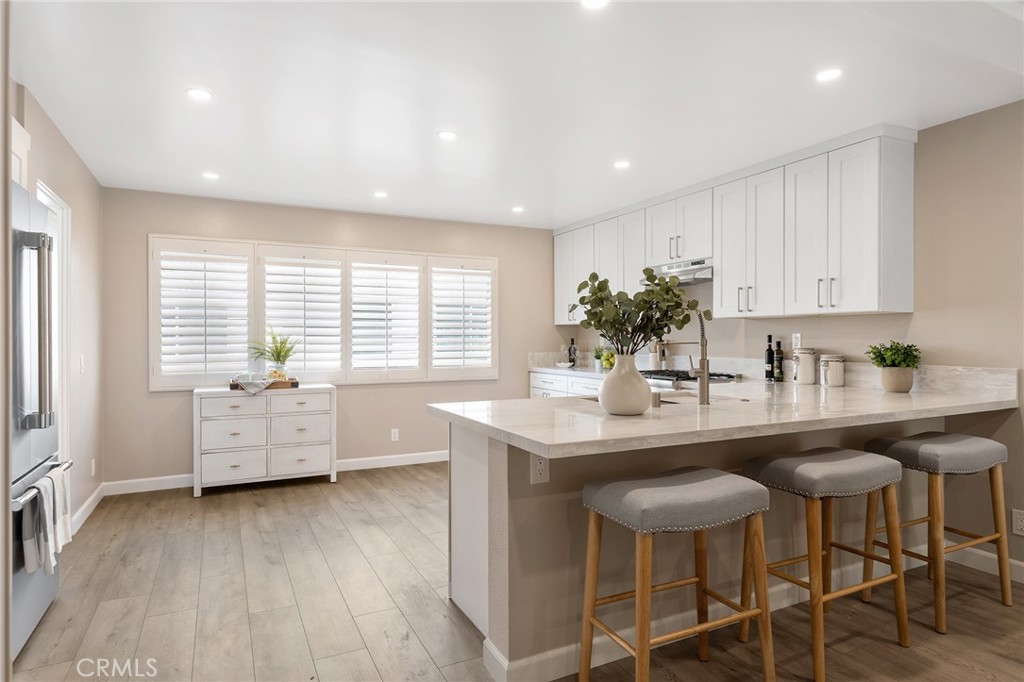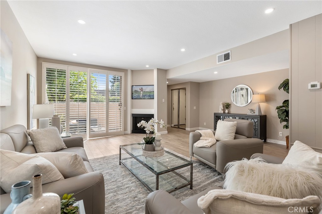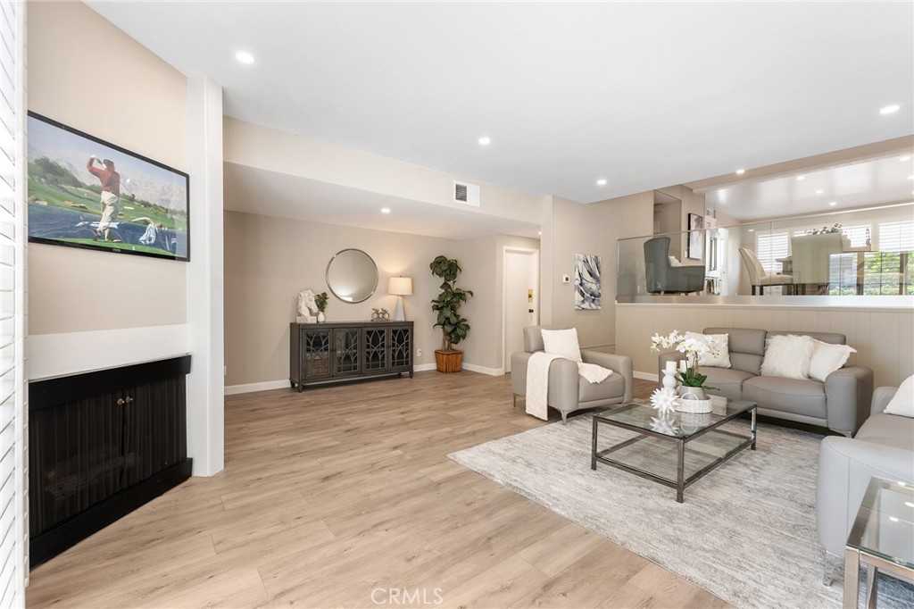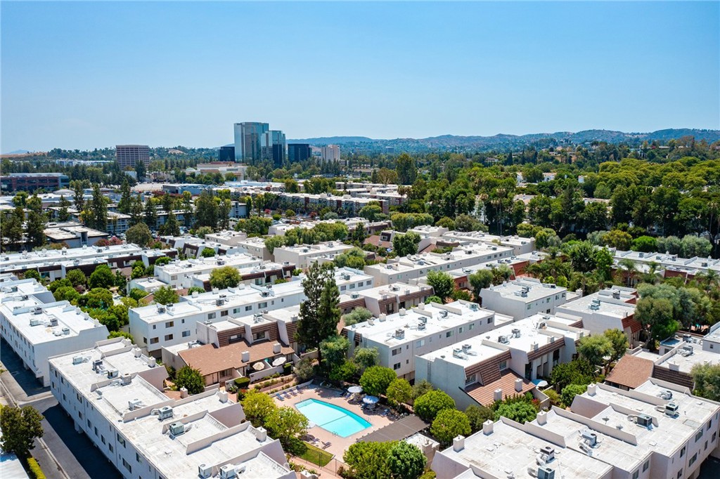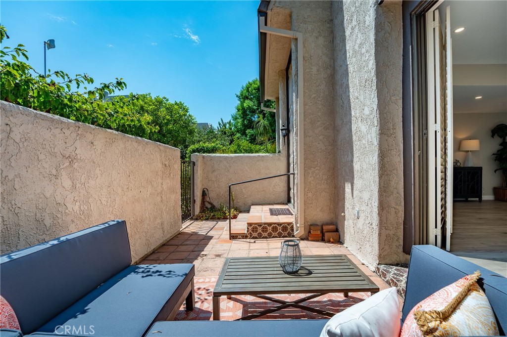 Stunning, completely remodeled almost 1,900 SF Villa Valencia townhome with attached 2-car garage with direct access! Located in the heart of Warner Center adjacent to dining/shopping at the Westfield Mall & Village, shops and eateries off Topanga Canyon, and minutes to the beach with easy freeway access. Boasting the largest floor plan in the complex, this thoughtfully renovated townhome greets you with a private gated courtyard with Spanish Saltillo and patterned tile flooring. Step inside where you’ll find a formal entry with coat closet with new wide plank luxury vinyl flooring found throughout. The entry opens to the spacious sunlit living room featuring fireplace and large glass sliding door that leads out to the front patio. The remarkable chef’s designer kitchen has been completely remodeled boasting real quartzite stone countertops, soft close cabinetry, breakfast bar seating, and a Thermador stainless appliance suite including built-in range with oven/stove, fridge, microwave, and dishwasher. The kitchen opens to the separate formal dining room with sleek modern glass railing which overlooks the living room. This level also has a convenient guest powder bathroom and separate laundry room with storage cabinets. Upstairs you will find two oversized bedroom suites. The primary bedroom has a double door entry, large wraparound closet with built-ins plus additional walk-in closet, and private en-suite upgraded bathroom with dual sinks, walk-in shower, and separate bathtub. The second bedroom suite could also serve as den/bonus room featuring double door entry, high vaulted ceiling, wet bar with sink, Juliet balcony overlooking the complex, large walk-in closet, and access to its own upgraded bathroom with walk-in shower. The two-car garage has built-in storage and has direct access to the townhome. The complex amenities include swimming pool, spa, and picnic area, and nicely landscaped grounds. Don’t miss this rare offering!