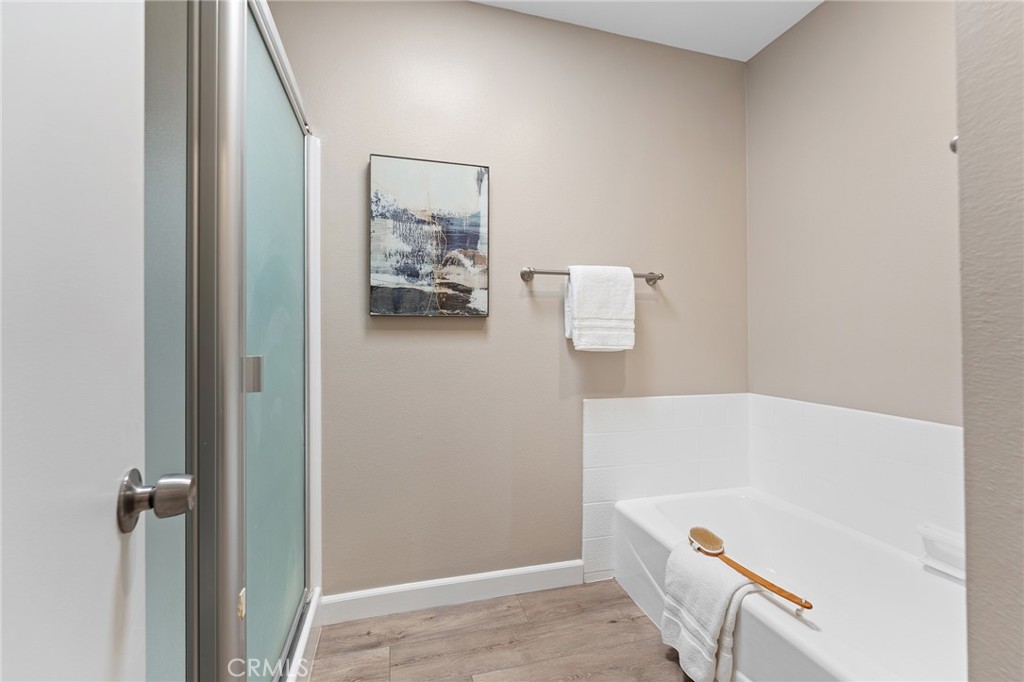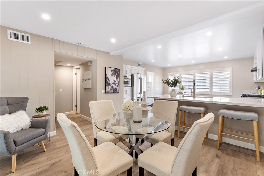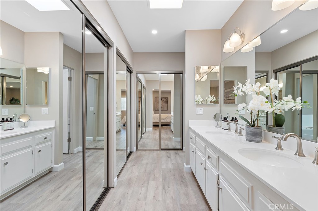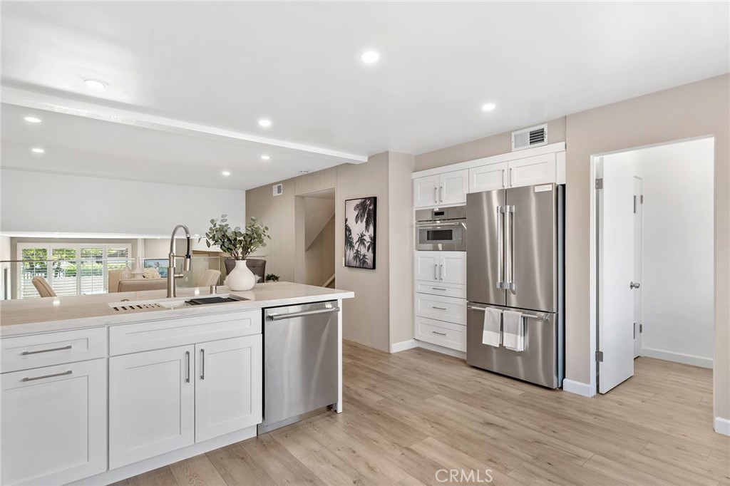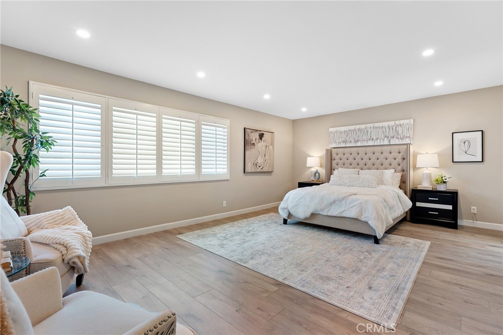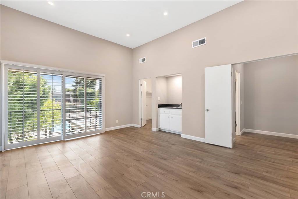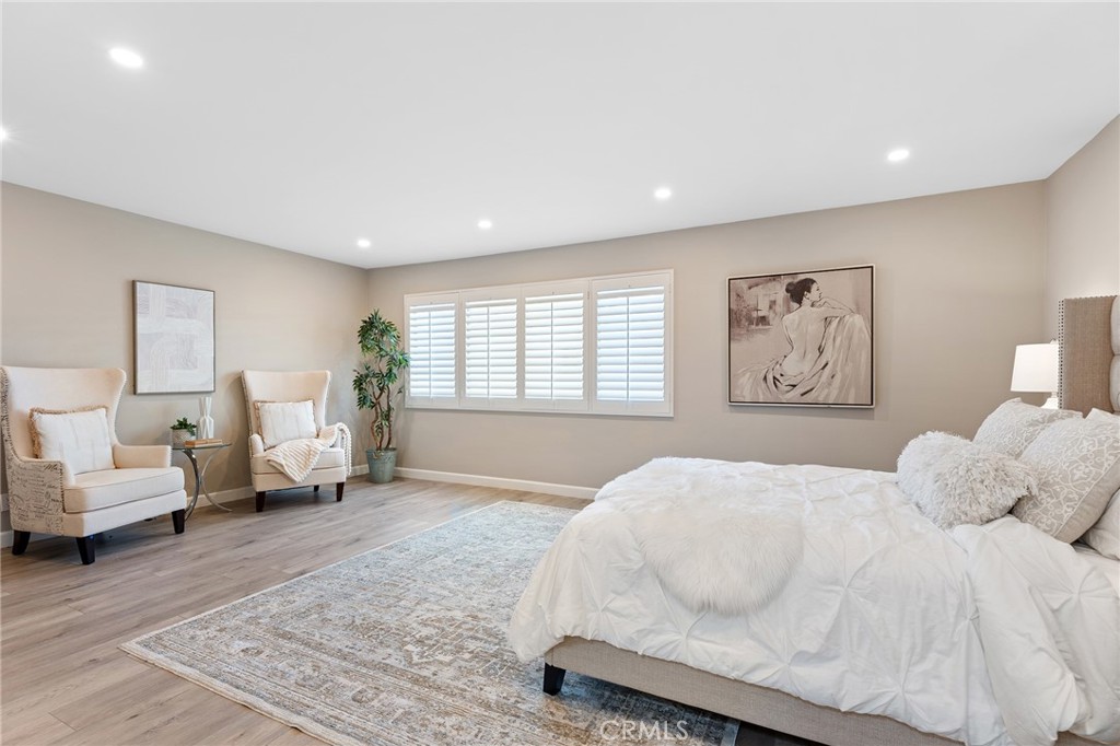 Stunning, completely remodeled almost 1,900 SF Villa Valencia townhome with attached 2-car garage with direct access! Located in the heart of Warner Center adjacent to dining/shopping at the Westfield Mall & Village, shops and eateries off Topanga Canyon, and minutes to the beach with easy freeway access. Boasting the largest floor plan in the complex, this thoughtfully renovated townhome greets you with a private gated courtyard with Spanish Saltillo and patterned tile flooring. Step inside where you’ll find a formal entry with coat closet with new wide plank luxury vinyl flooring found throughout. The entry opens to the spacious sunlit living room featuring fireplace and large glass sliding door that leads out to the front patio. The remarkable chef’s designer kitchen has been completely remodeled boasting real quartzite stone countertops, soft close cabinetry, breakfast bar seating, and a Thermador stainless appliance suite including built-in range with oven/stove, fridge, microwave, and dishwasher. The kitchen opens to the separate formal dining room with sleek modern glass railing which overlooks the living room. This level also has a convenient guest powder bathroom and separate laundry room with storage cabinets. Upstairs you will find two oversized bedroom suites. The primary bedroom has a double door entry, large wraparound closet with built-ins plus additional walk-in closet, and private en-suite upgraded bathroom with dual sinks, walk-in shower, and separate bathtub. The second bedroom suite could also serve as den/bonus room featuring double door entry, high vaulted ceiling, wet bar with sink, Juliet balcony overlooking the complex, large walk-in closet, and access to its own upgraded bathroom with walk-in shower. The two-car garage has built-in storage and has direct access to the townhome. The complex amenities include swimming pool, spa, and picnic area, and nicely landscaped grounds. Don’t miss this rare offering!